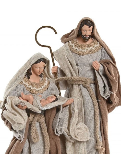 Celebre o verdadeiro espírito do Natal com esta encantadora Sagrada Família em tons bege e castanho, uma peça que transmite serenidade, fé e harmonia. Cuidadosamente trabalhada com tecidos naturais e detalhes delicados, esta escultura é perfeita para criar um ambiente acolhedor e cheio de significado na sua decoração natalícia.