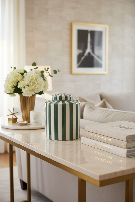Pote Listra riscas branco e verde
