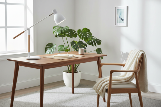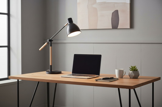 Candeeiro de pé Vaio com prateleira apoio madeira e branco