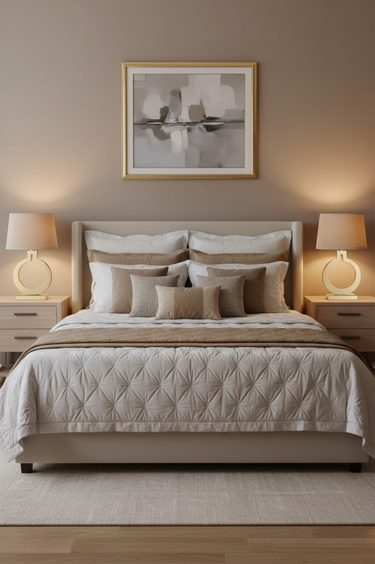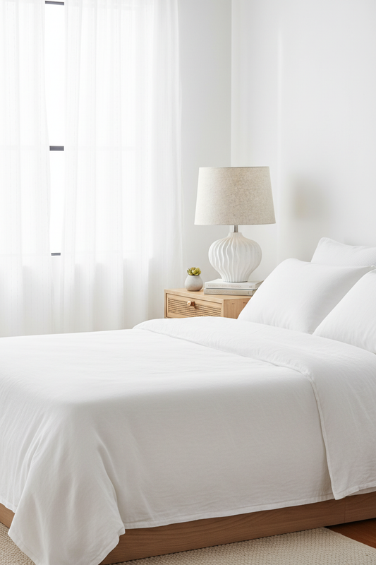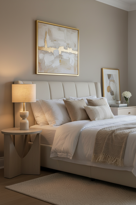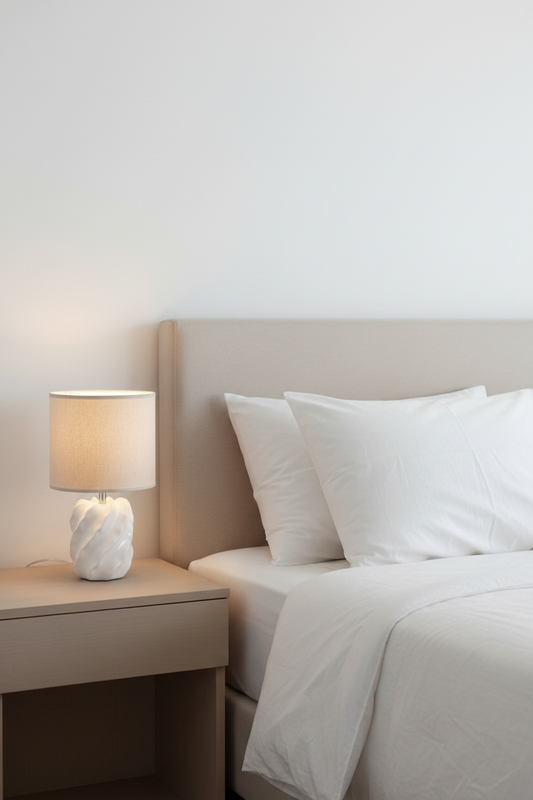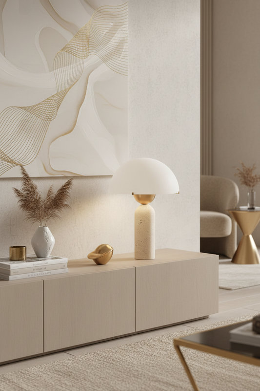 Candeeiro de mesa Mármore Travertino Bege com Abajur Linho
