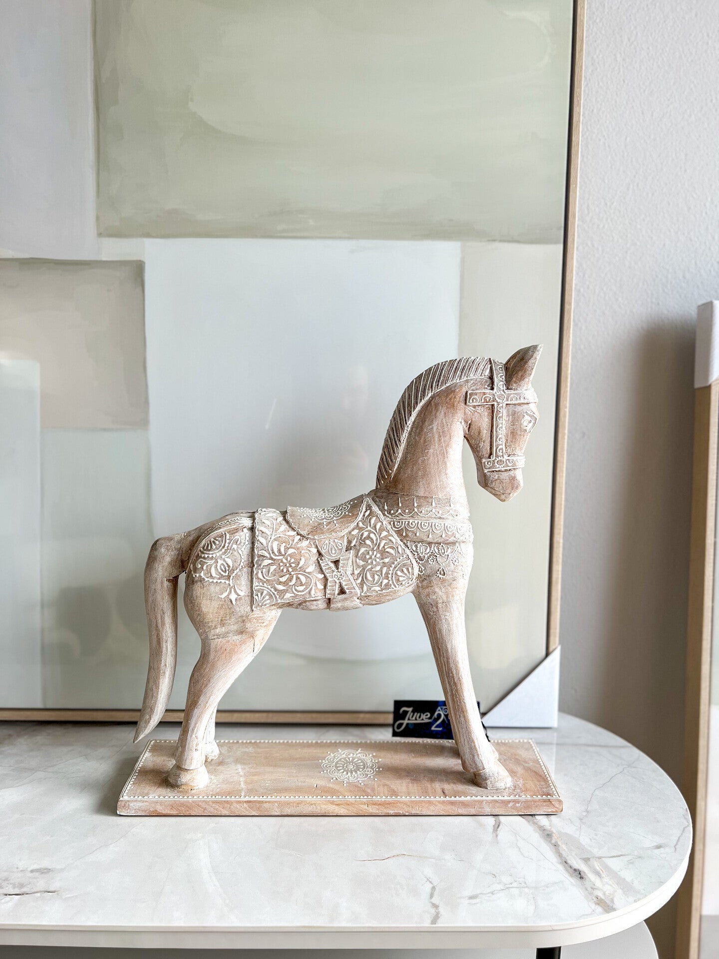 Cavalo Amoro Madeira Natural e Pintura em branco.