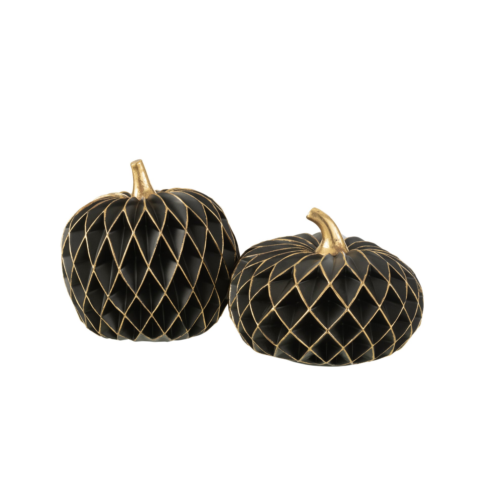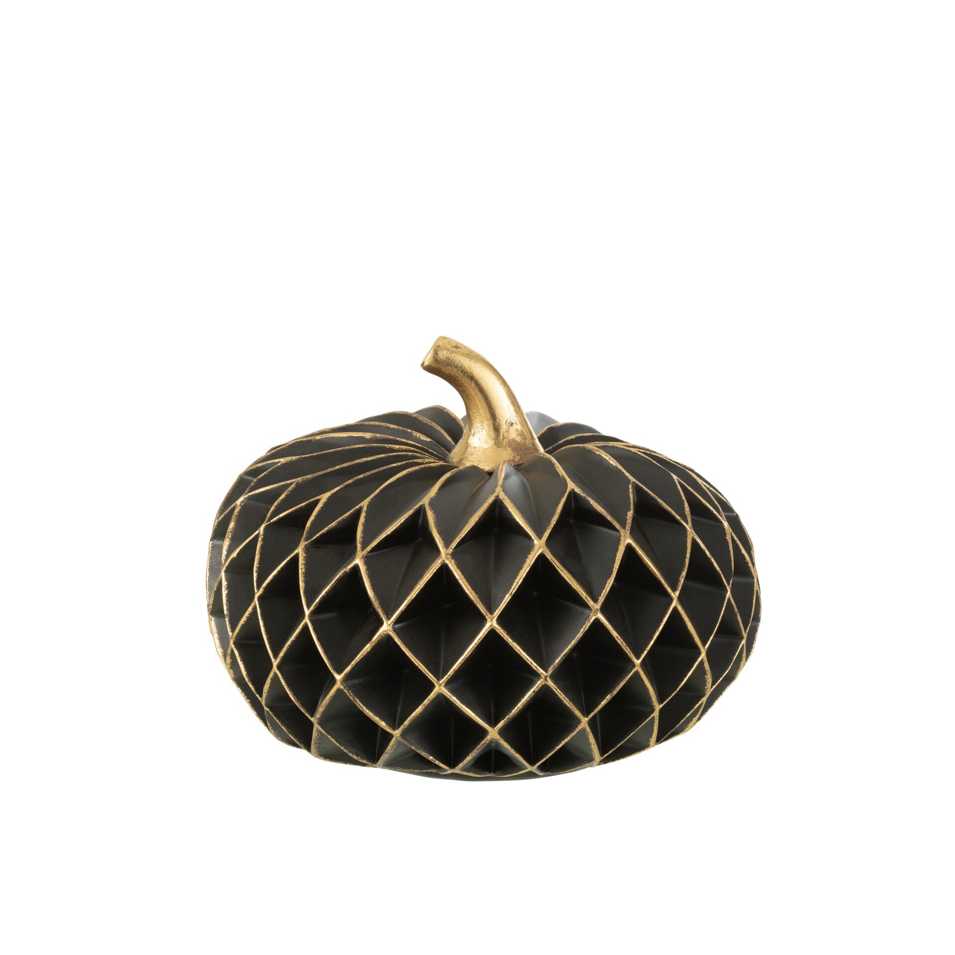 Escultura Abóbora, em fibra na cor preto e detalhes dourados