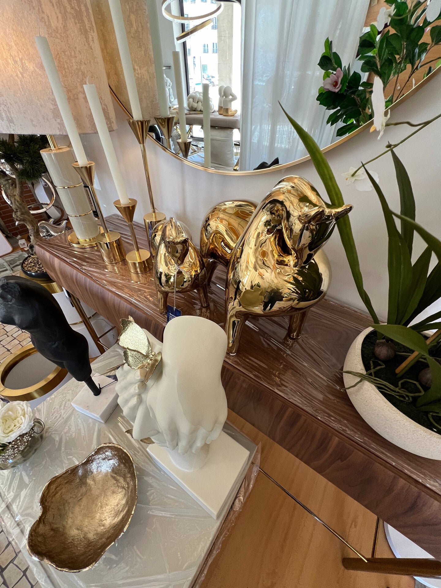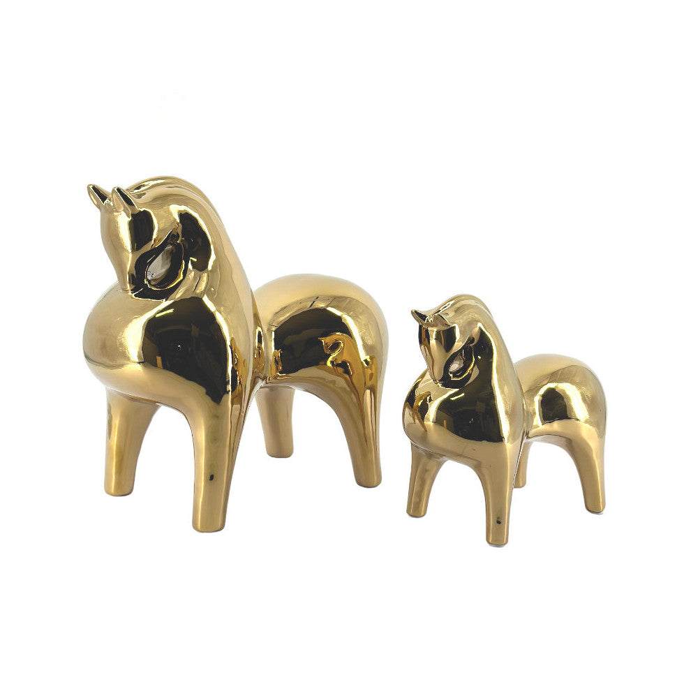 Apresentamos a nossa deslumbrante Escultura Cavalo em cerâmica em acabamento brilhante dourado. Esta peça única é uma representação perfeita da beleza e graça do majestoso cavalo. Feita com linhas simplificadas e modernas, a escultura captura a essência da nobreza animal.