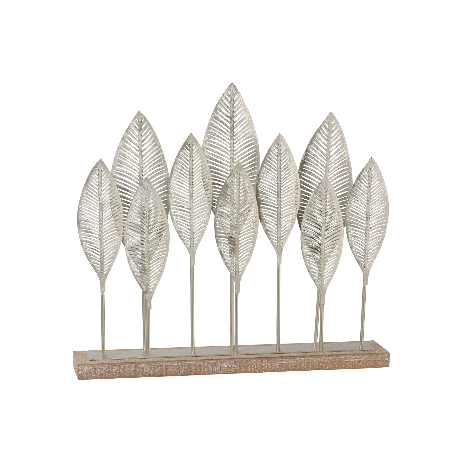 Perfeita para ser exibida em estantes, mesas de centro ou até mesmo em espaços de trabalho, a Escultura Folhas Cinza Metálicas com Base Madeira Natural é uma obra de arte versátil que adicionará um toque de estilo e refinamento a qualquer ambiente. Seja em uma sala de estar, escritório ou sala de jantar, esta peça única certamente se destacará, despertando admiração e gerando conversas.