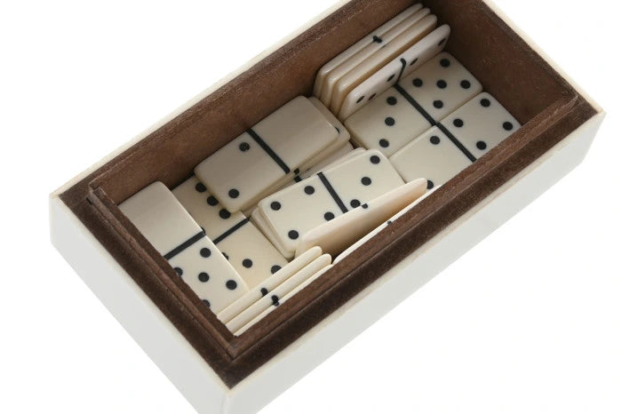 Jogo dominó caixa madeira branca