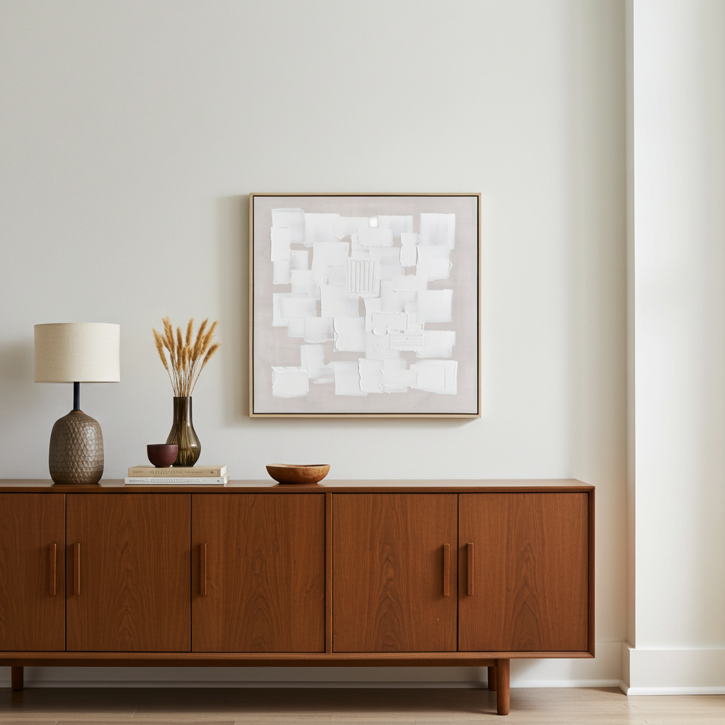 Quadro pintura texturada bege e branco 82x82cm