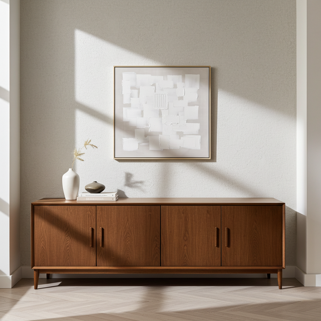 Quadro feito com a técnica de acrílico sobre tela, pintado à mão. Uma pintura minimalista com texturas em bege e branco, que a tornam uma peça intemporal e discreta. Ideal para quem gosta de mobiliar no estilo contemporâneo.