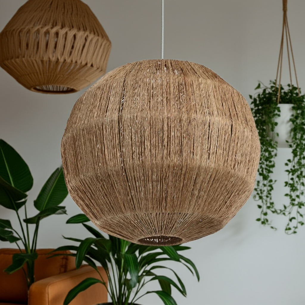 Este abajur é perfeito para iluminar áreas amplas da sua casa, como a sala de estar, sala de jantar ou até mesmo um espaço ao ar livre. Seja qual for o ambiente, este candeeiro destaca-se como uma peça central que atrai a atenção e adiciona um toque de charme natural à sua decoração.