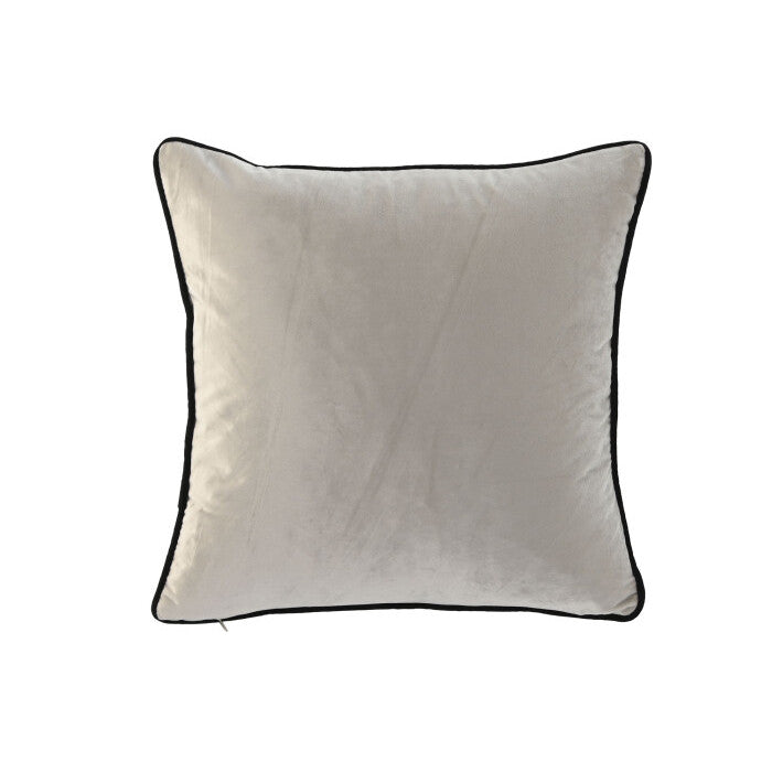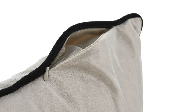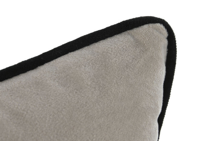 Almofada cinza c/vivo preto, em veludo. Uma almofada elegante e sofisticada para a sua cama, sofá ou poltronas.