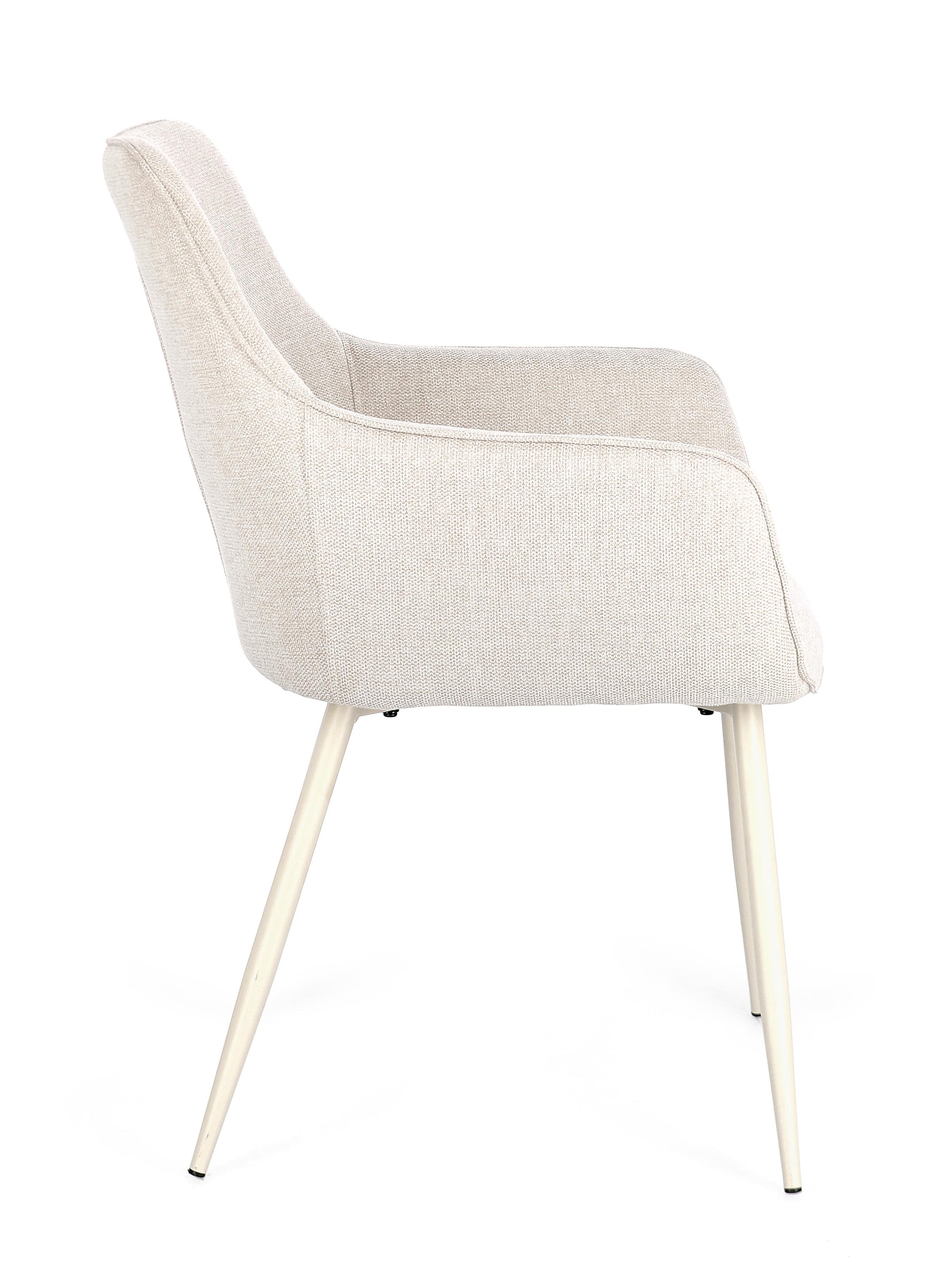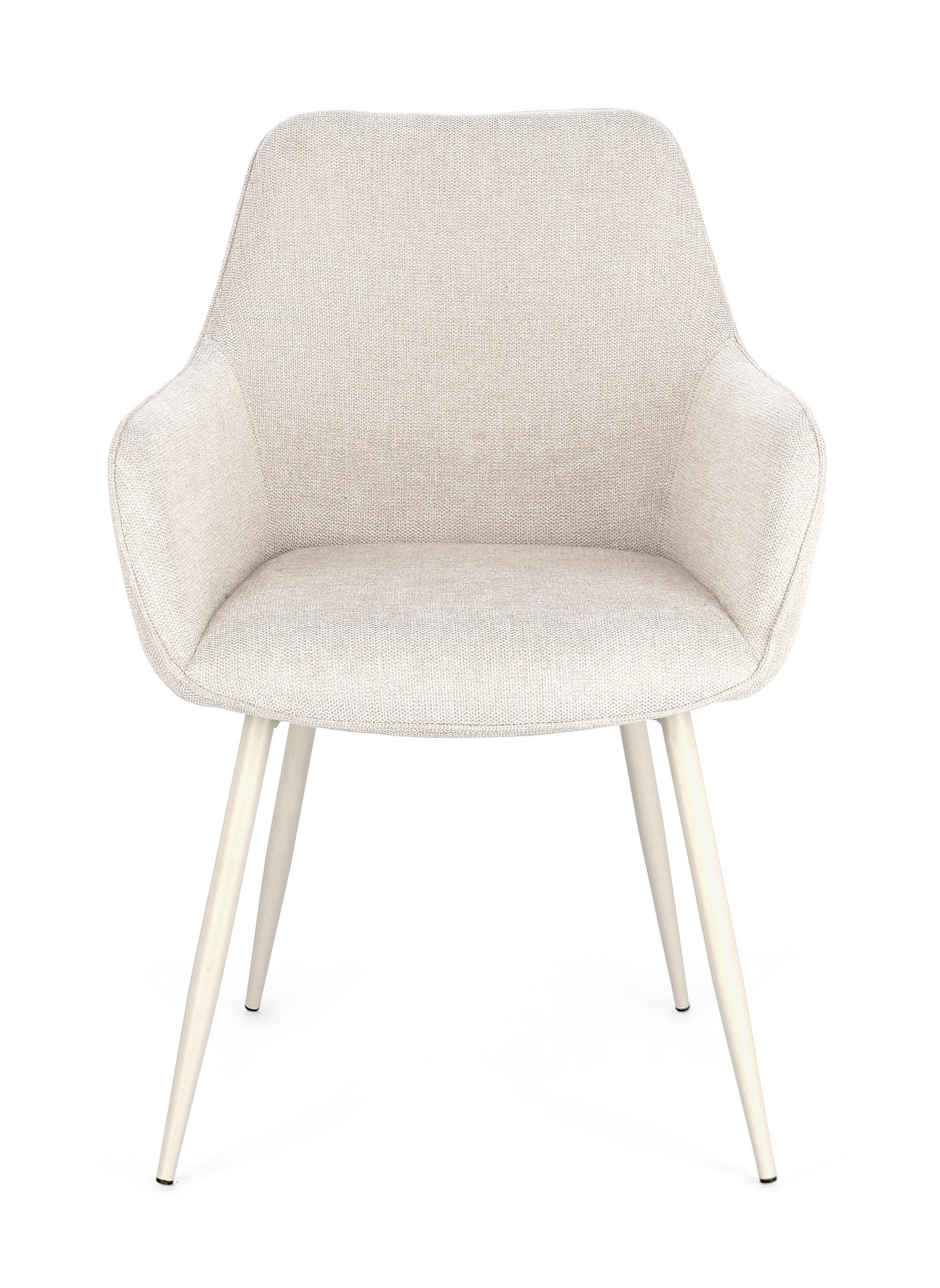 Cadeira Cora c/braços Bege, com pernas em metal bege.