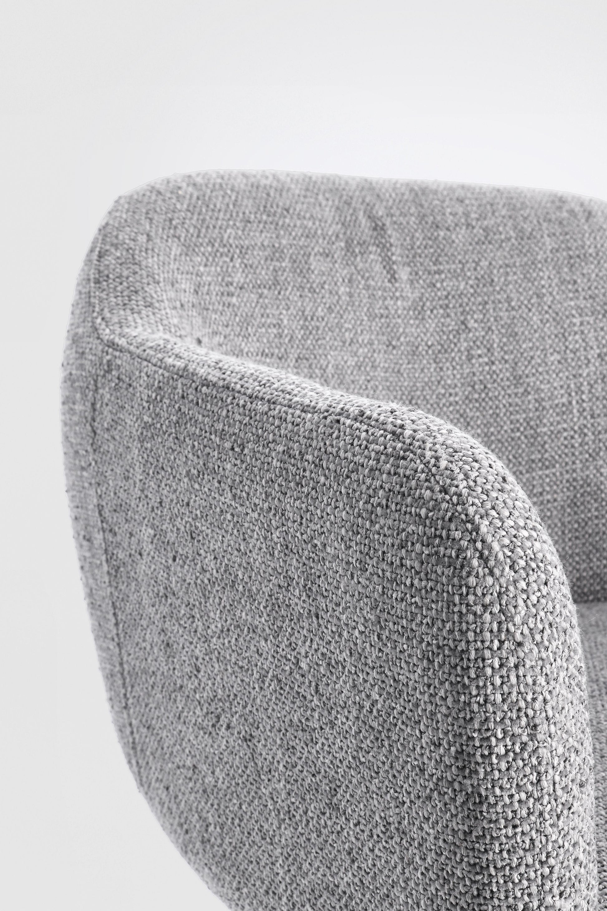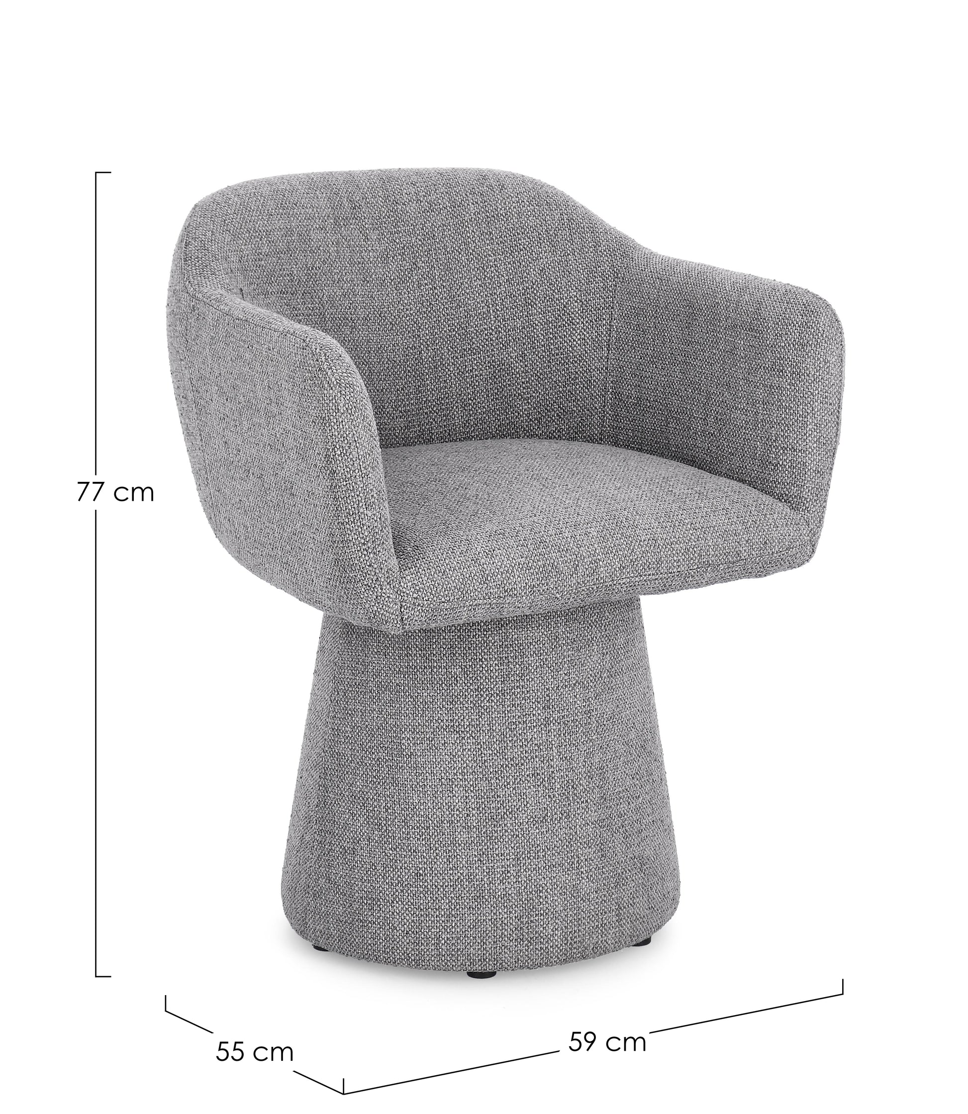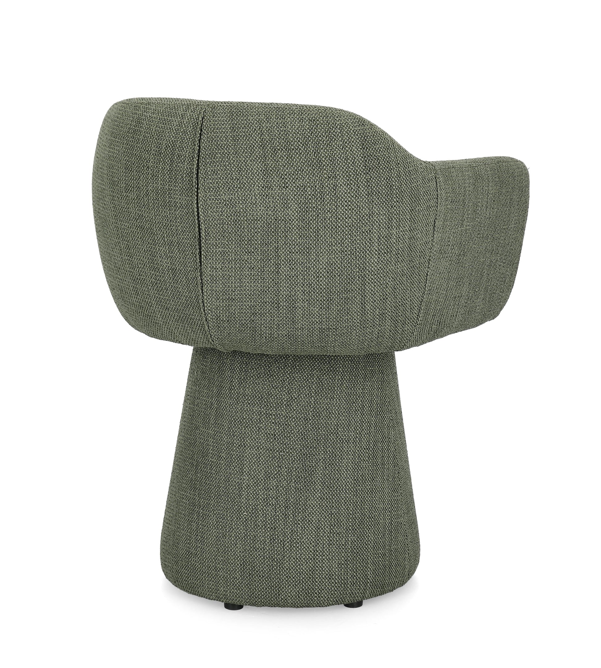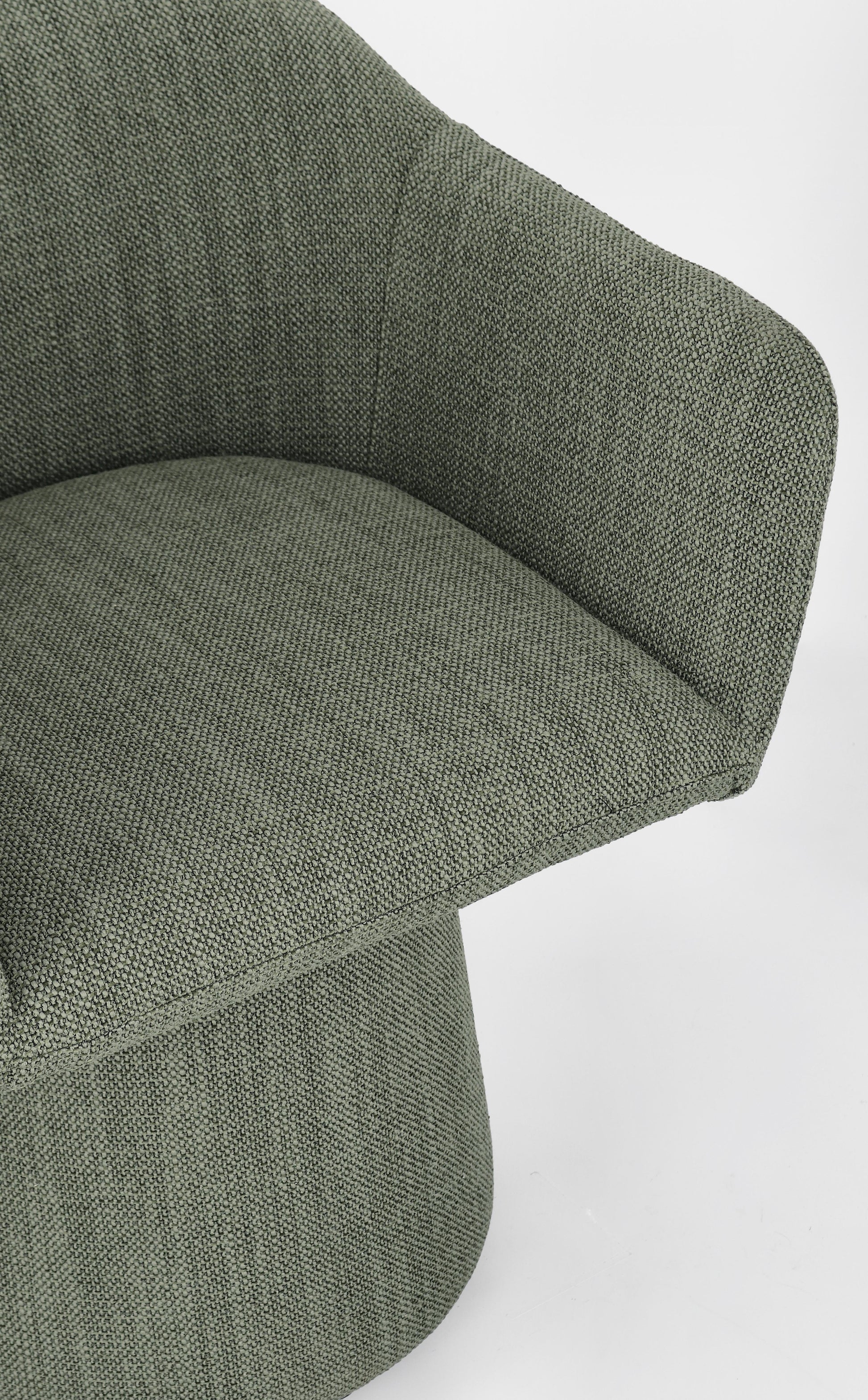 Pés baixos na madeira compensada, parte traseira no aço. Assento giratório 180° com mecanismo de retorno, em aço revestido a pó e contraplacado. Assento 22 kg/m3 encosto 30 kg/m3. Revestimento 97% poliéster 3% acrílico.