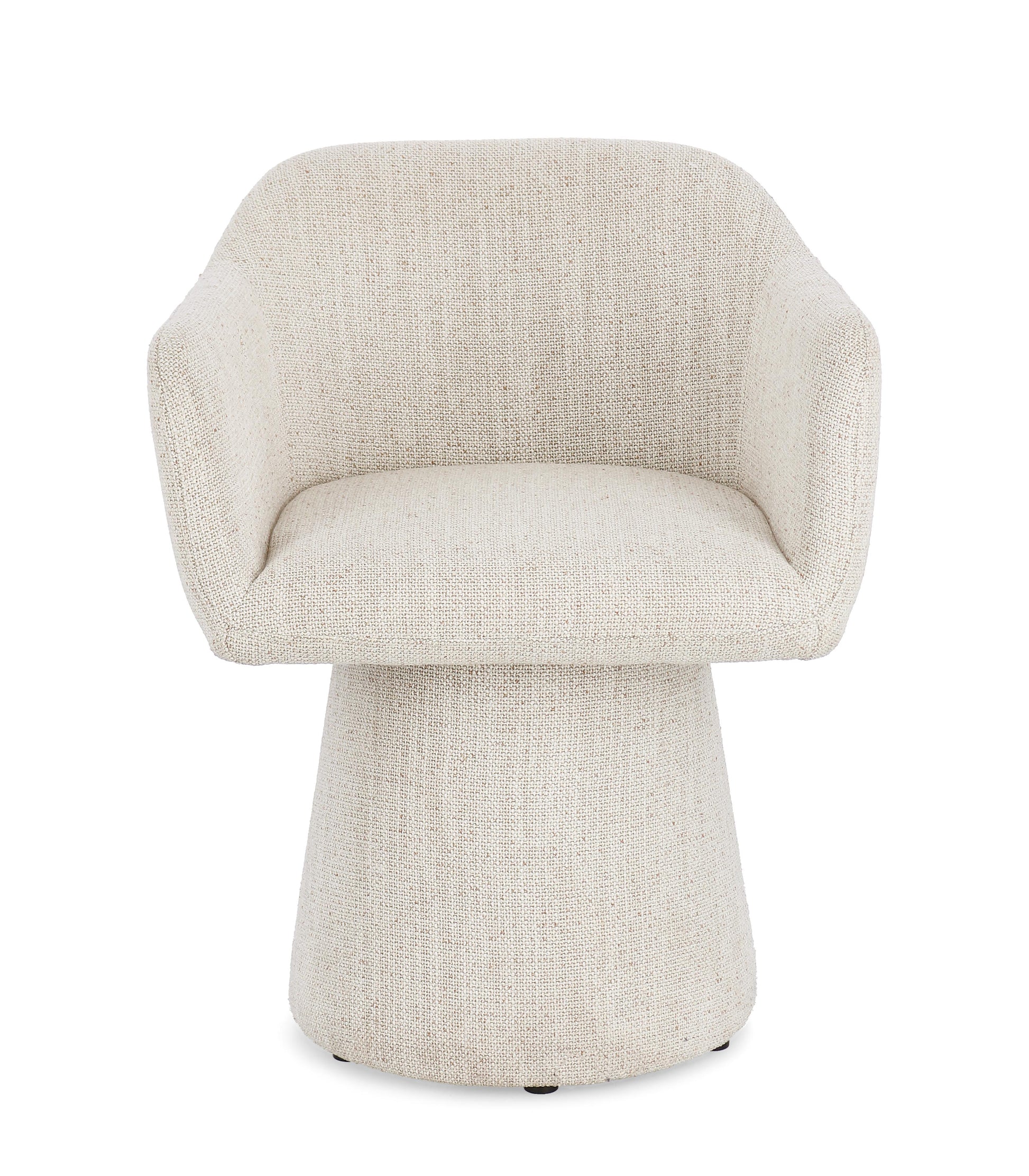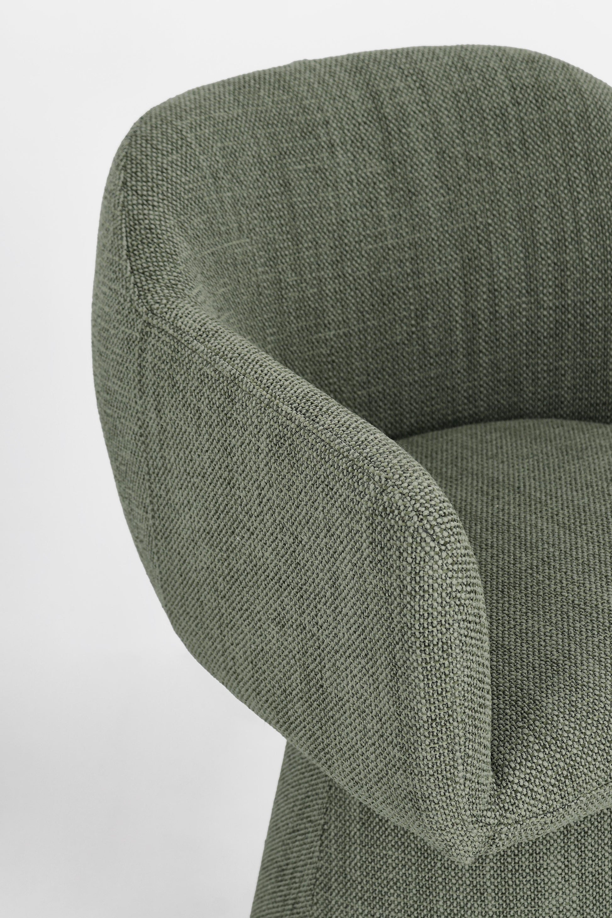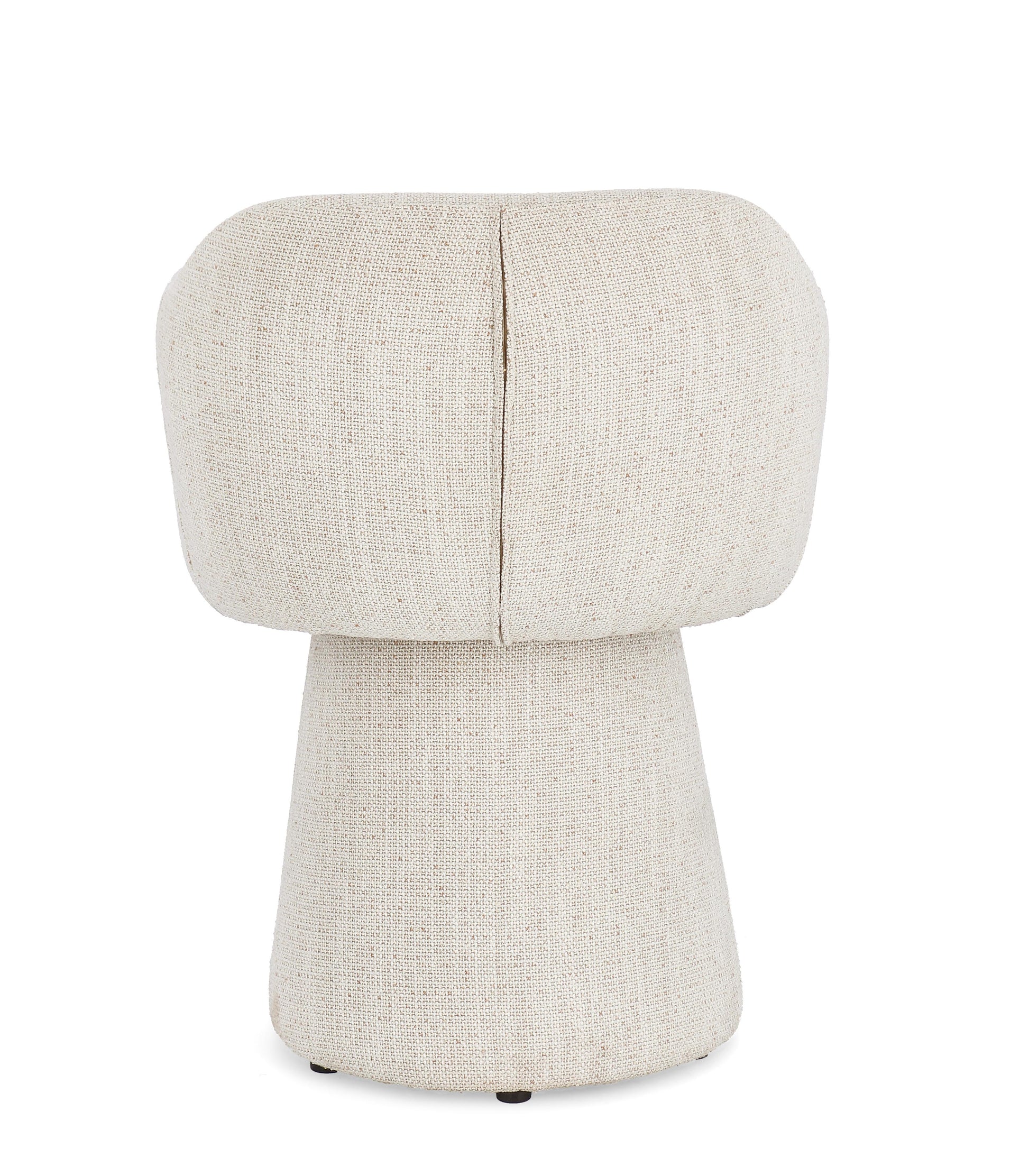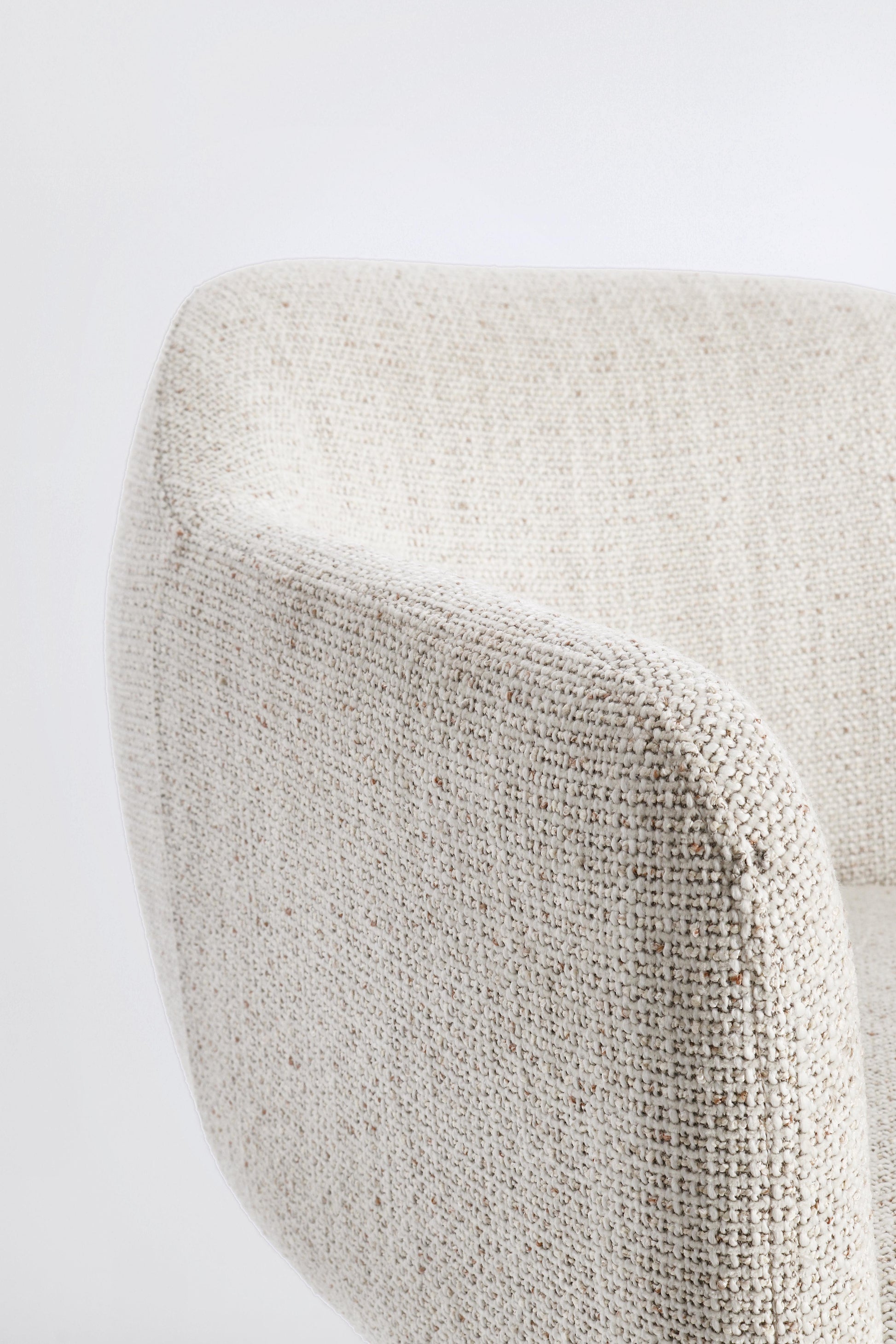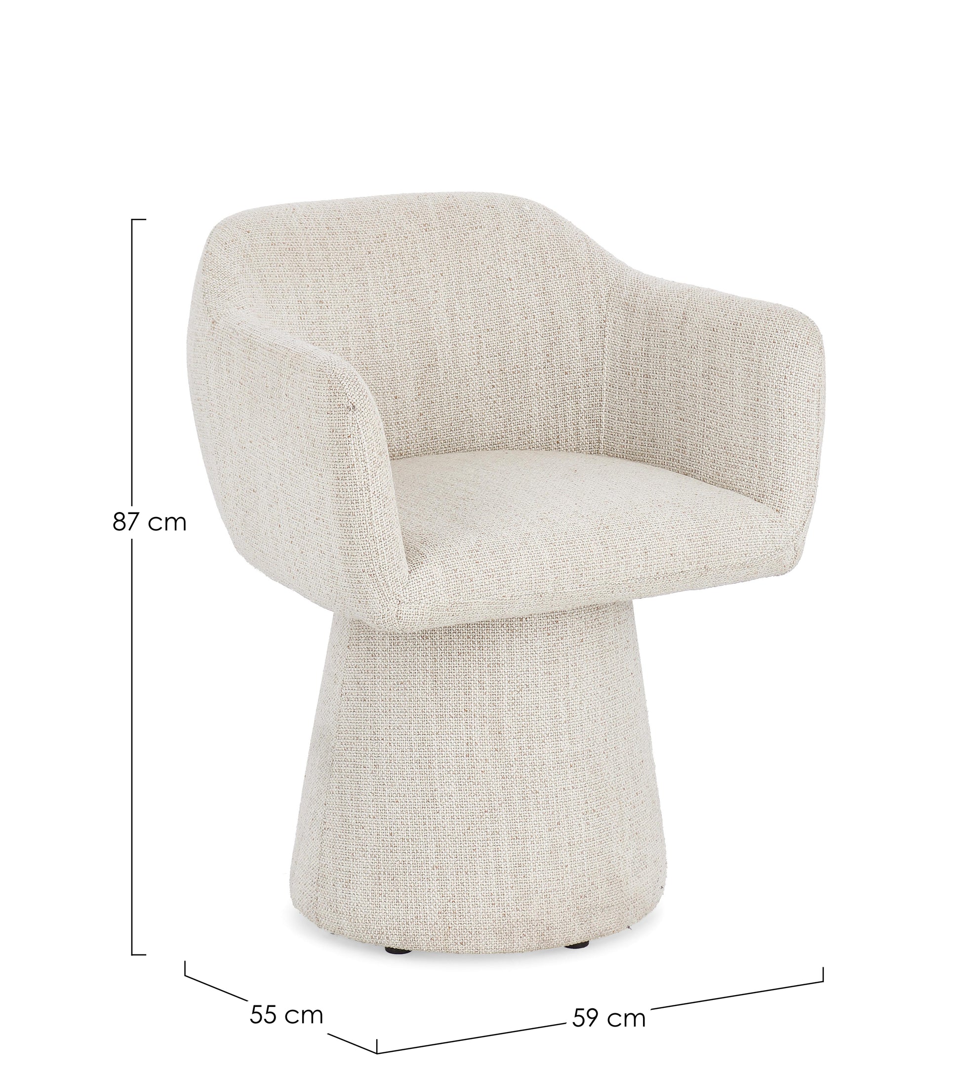 Pés baixos na madeira compensada, parte traseira no aço. Assento giratório 180° com mecanismo de retorno, em aço revestido a pó e contraplacado. Assento 22 kg/m3 encosto 30 kg/m3. Revestimento 97% poliéster 3% acrílico.