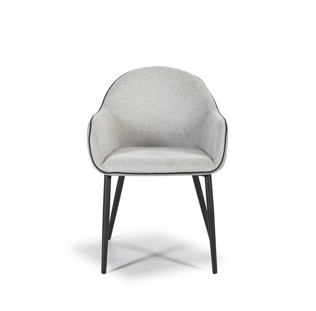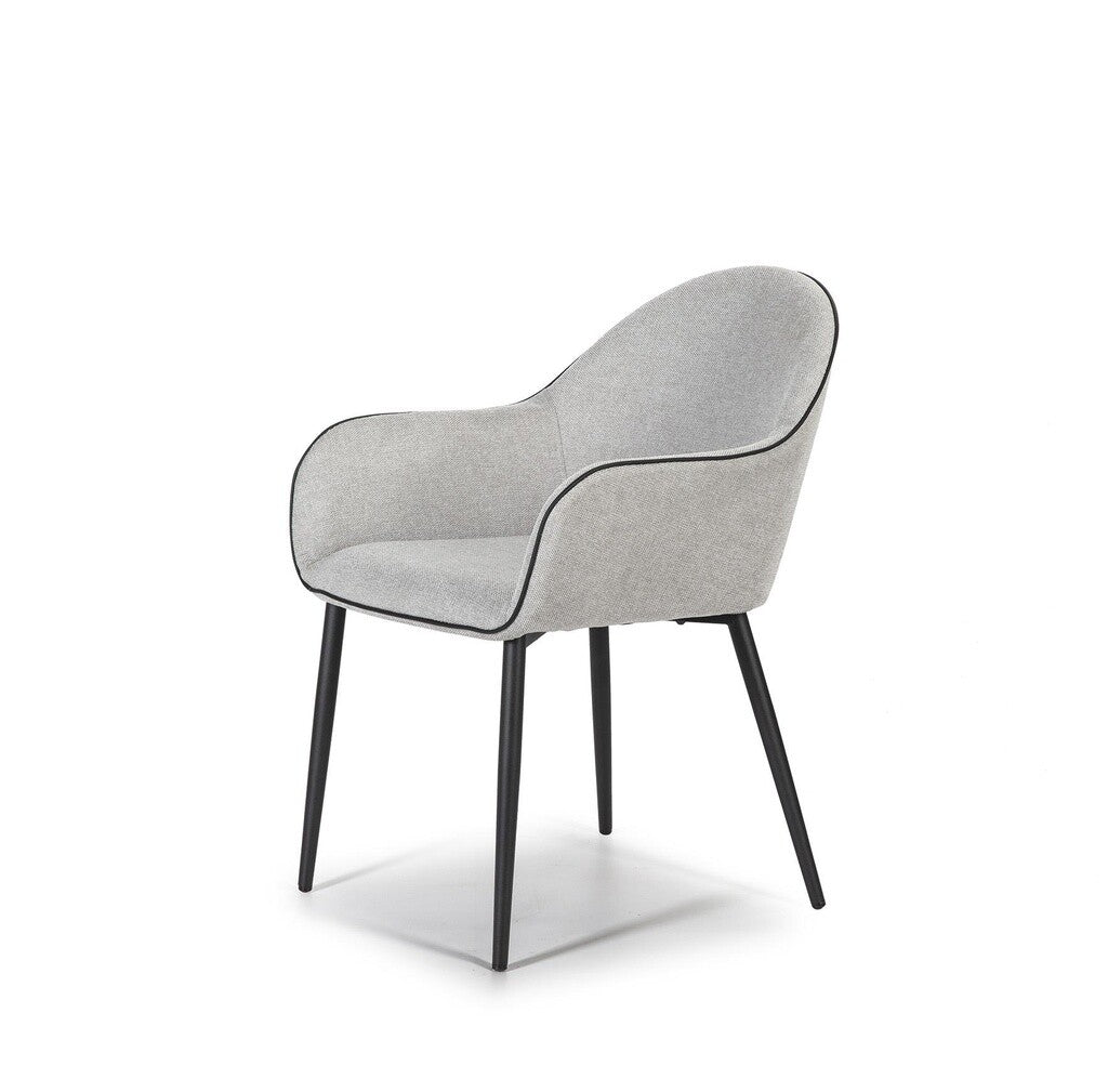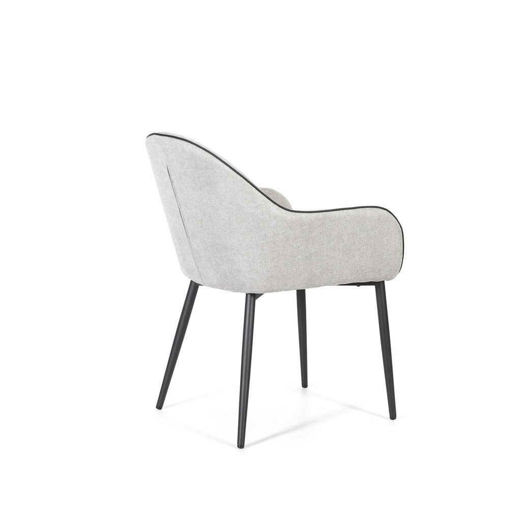 Cadeira Vivo, com pernas em metal preto. Para além de ser um assento confortável e cómodo, a nossa Cadeira Vivo é uma cadeira elegante e sofisticada de última tendência. Ideal para salas de estar, salas de jantar e cozinhas, é também o acessório decorativo perfeito para completar a decoração dos quartos ou vestuários. Contemporâneo em estilo, combina um assento, encosto estofado num tecido macio que é agradável tanto à vista como ao tacto, com pernas de metal.