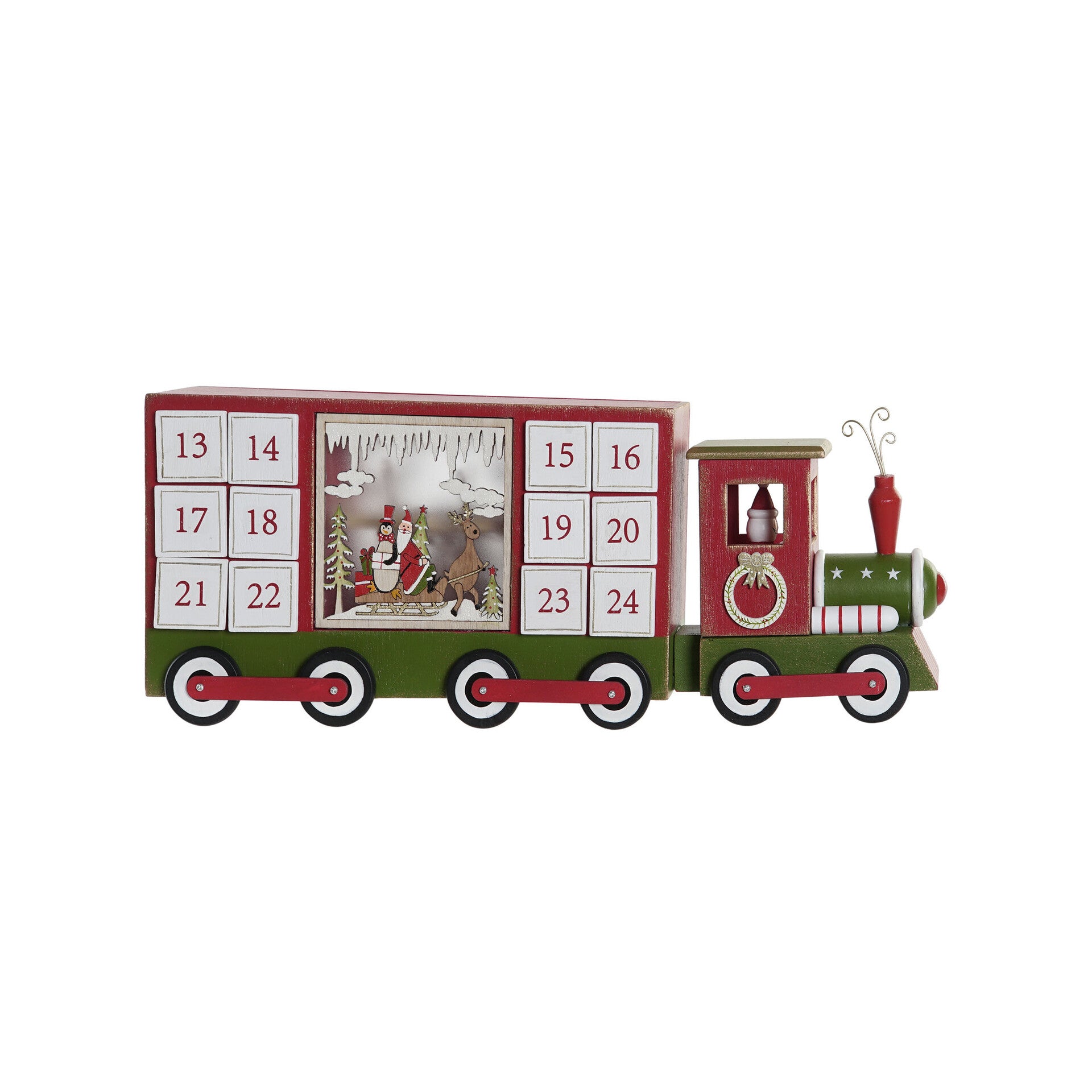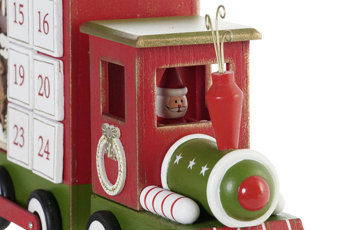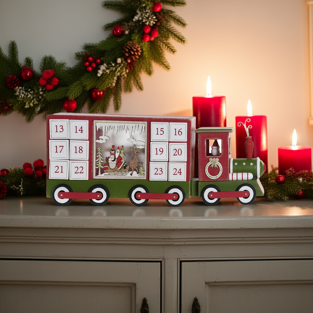 O calendário do advento em forma de comboio, em madeira, com o Pai Natal lá dentro ao volante e iluminado para deixar a sua casa mais encantadora nesta época!