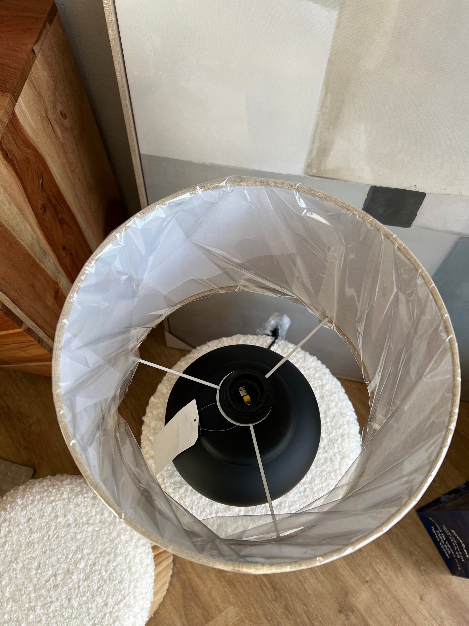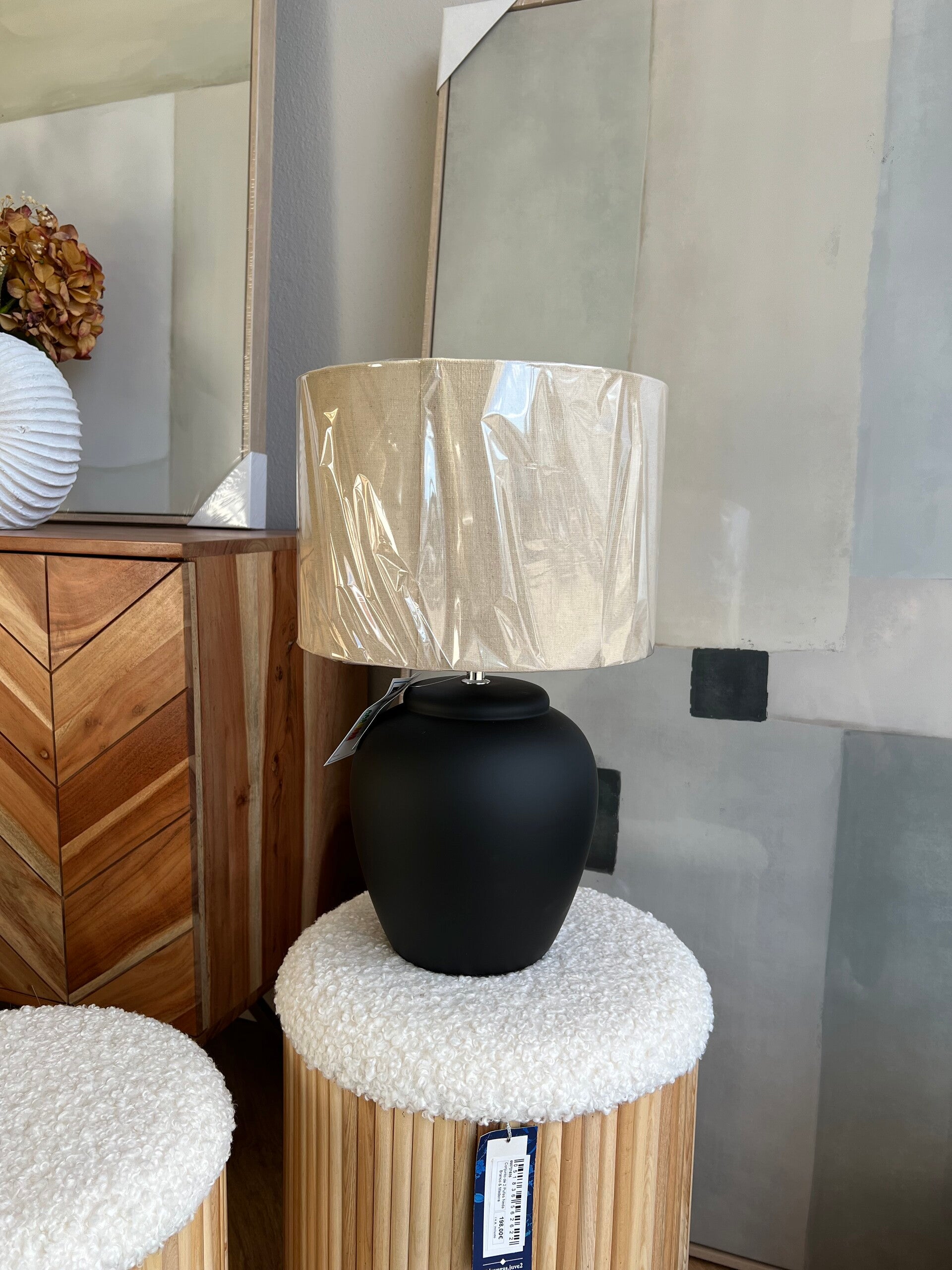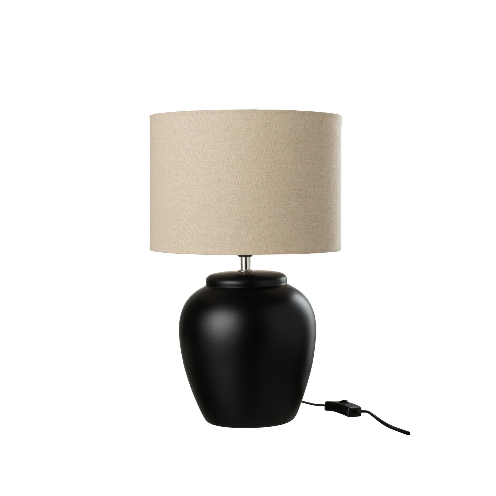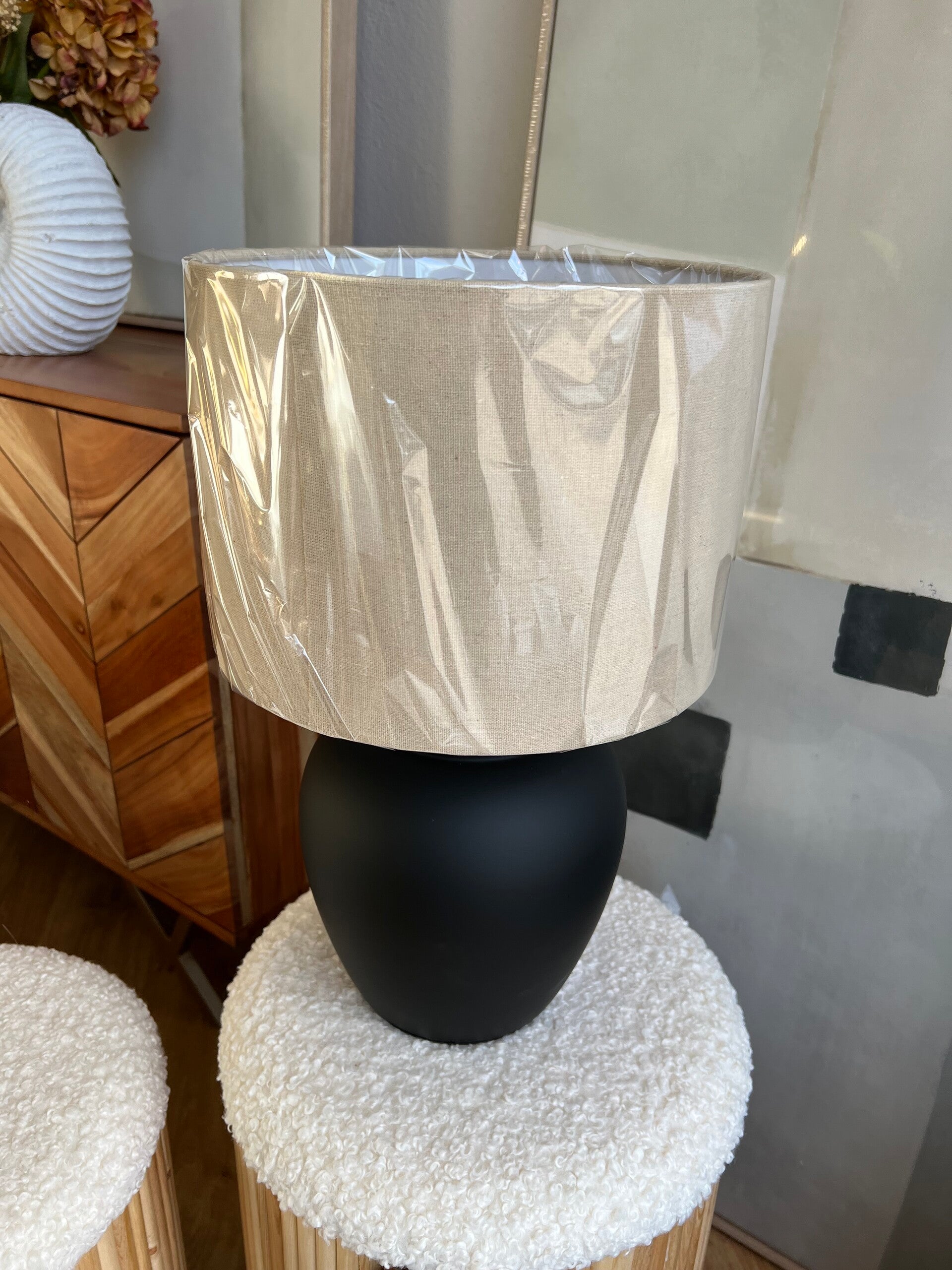 Candeeiro de mesa Meli cerâmico preto com abajur Linho Bege. Para criar ambientes suaves e acolhedores na sua sala de estar, quarto ou entrada. Ideal para decorar em estilo natural moderno.