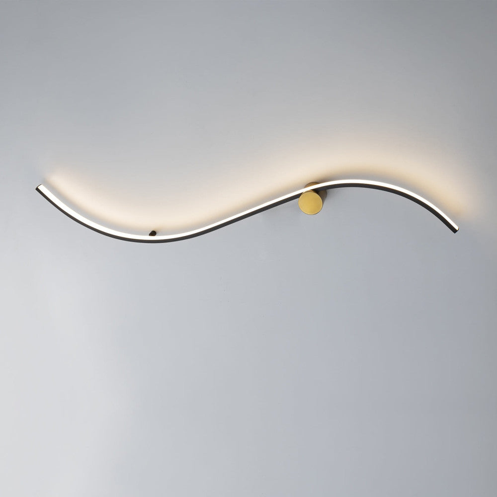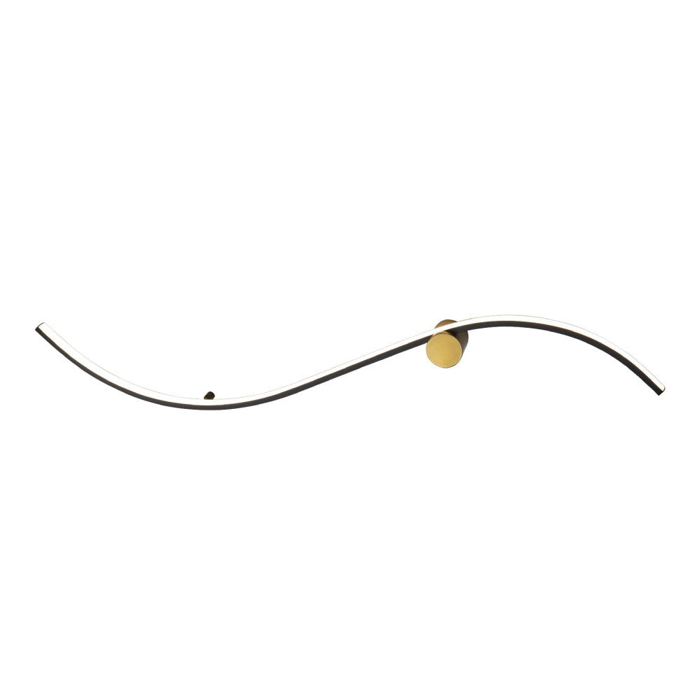 Candeeiro de parede em metal e alumínio, acabamento preto mate e dourado. Difusor de silicone opala. 13W LED, 1.050lm, 3.000K