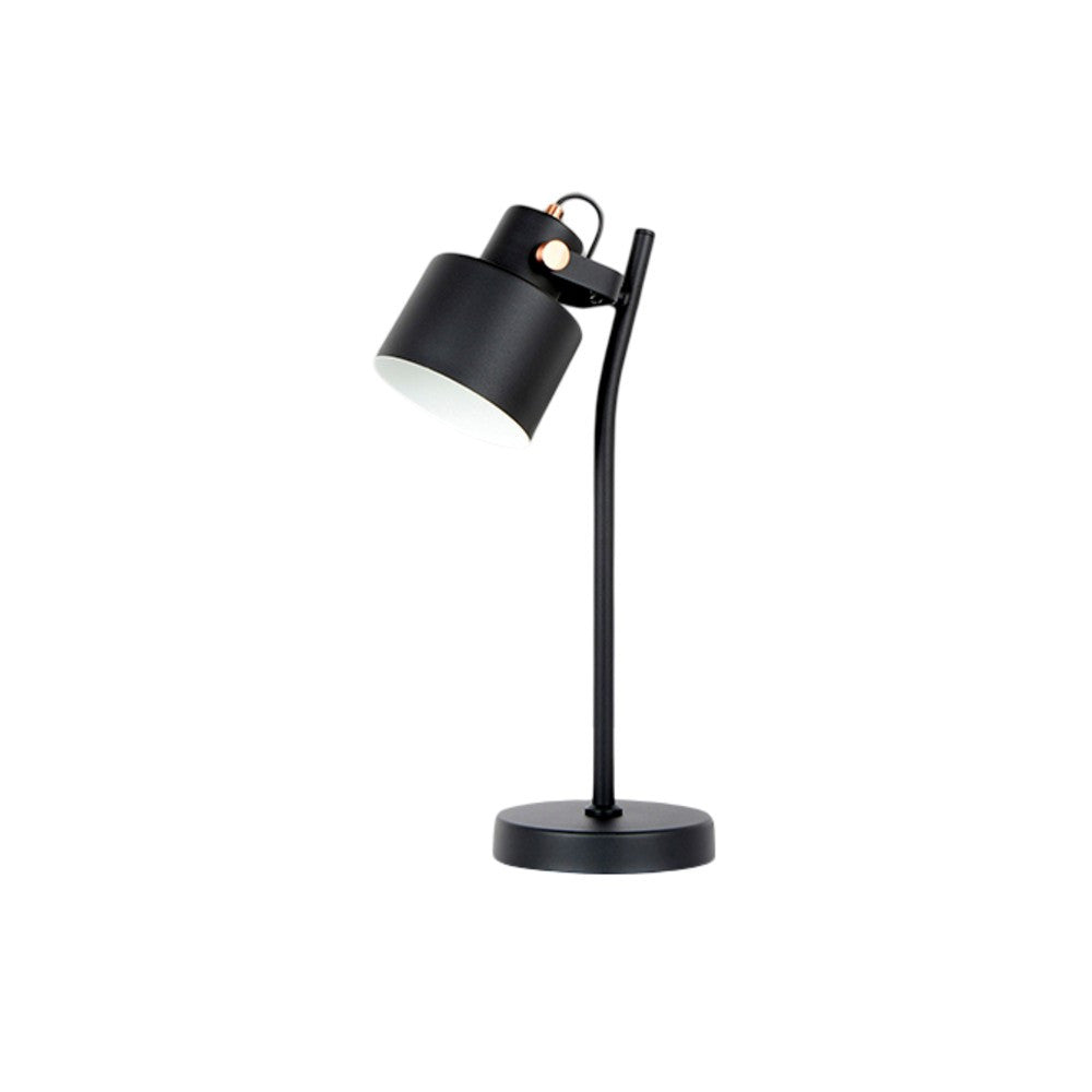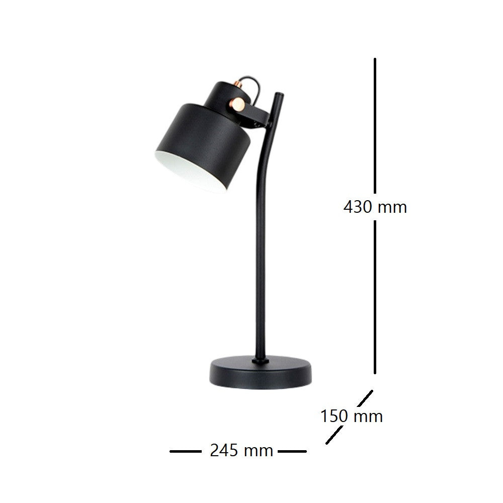 Candeeiro de mesa Erika, produzido de metal com acabamento preto fosco e detalhes em cobre acetinado. Candeeiro luz direcionada, ideal para secretária ou mesa apoio. O abajur é ajustável em inclinação, permitindo que personalize a iluminação ao seu gosto. Com o suporte da lâmpada E27, esta lâmpada oferece uma iluminação versátil que se adapta às suas necessidades. Dê um toque de distinção ao seu espaço com Schuller!