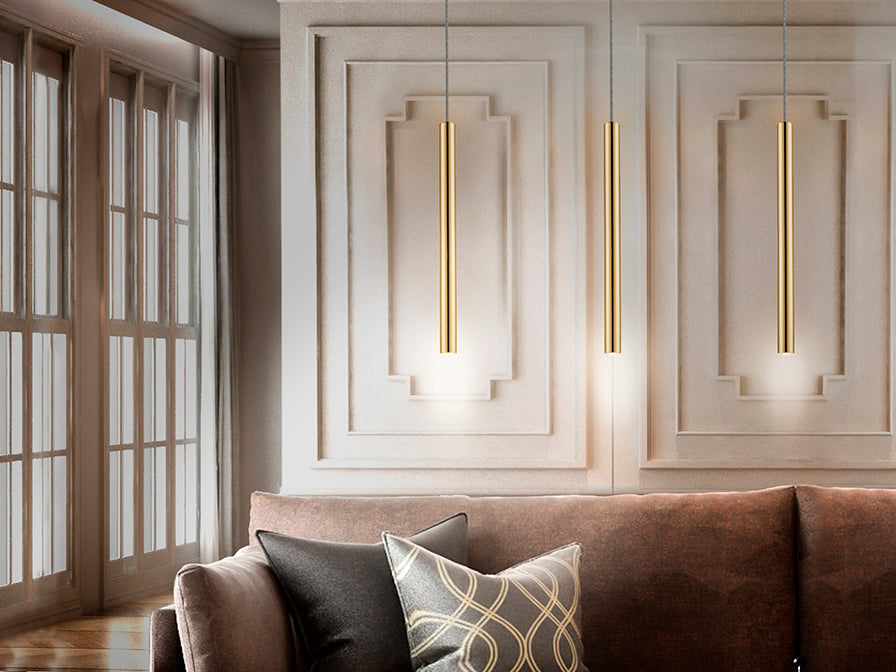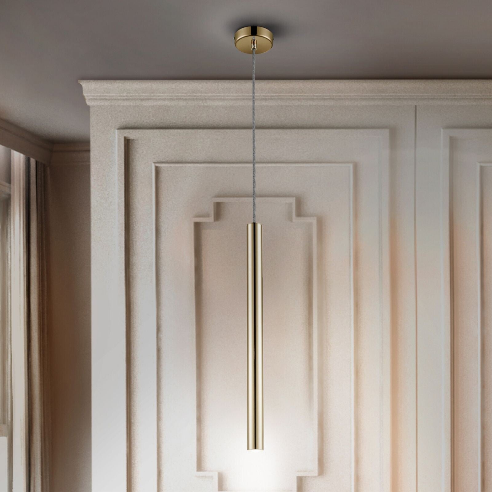 Candeeiro de 1 luz LED. Realizado em metal acabamento ouro brilho.