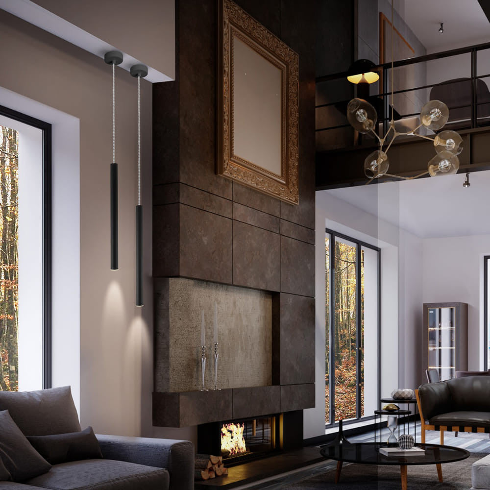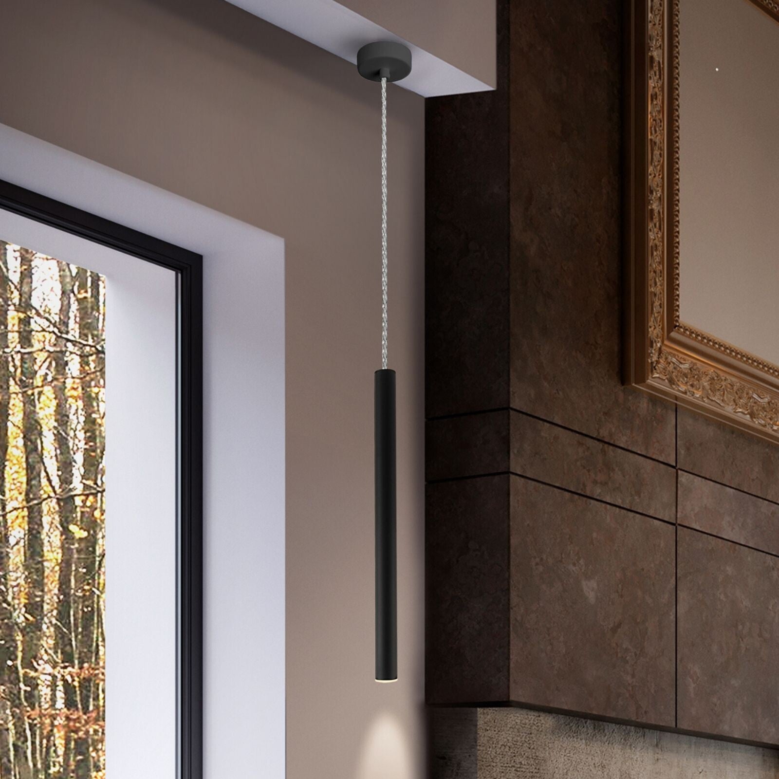 Candeeiro de 1 luz LED. Realizado em metal, acabamento preto mate. Difusor acrílico opalino. 5W LED, 450 lm, 3.000 K.