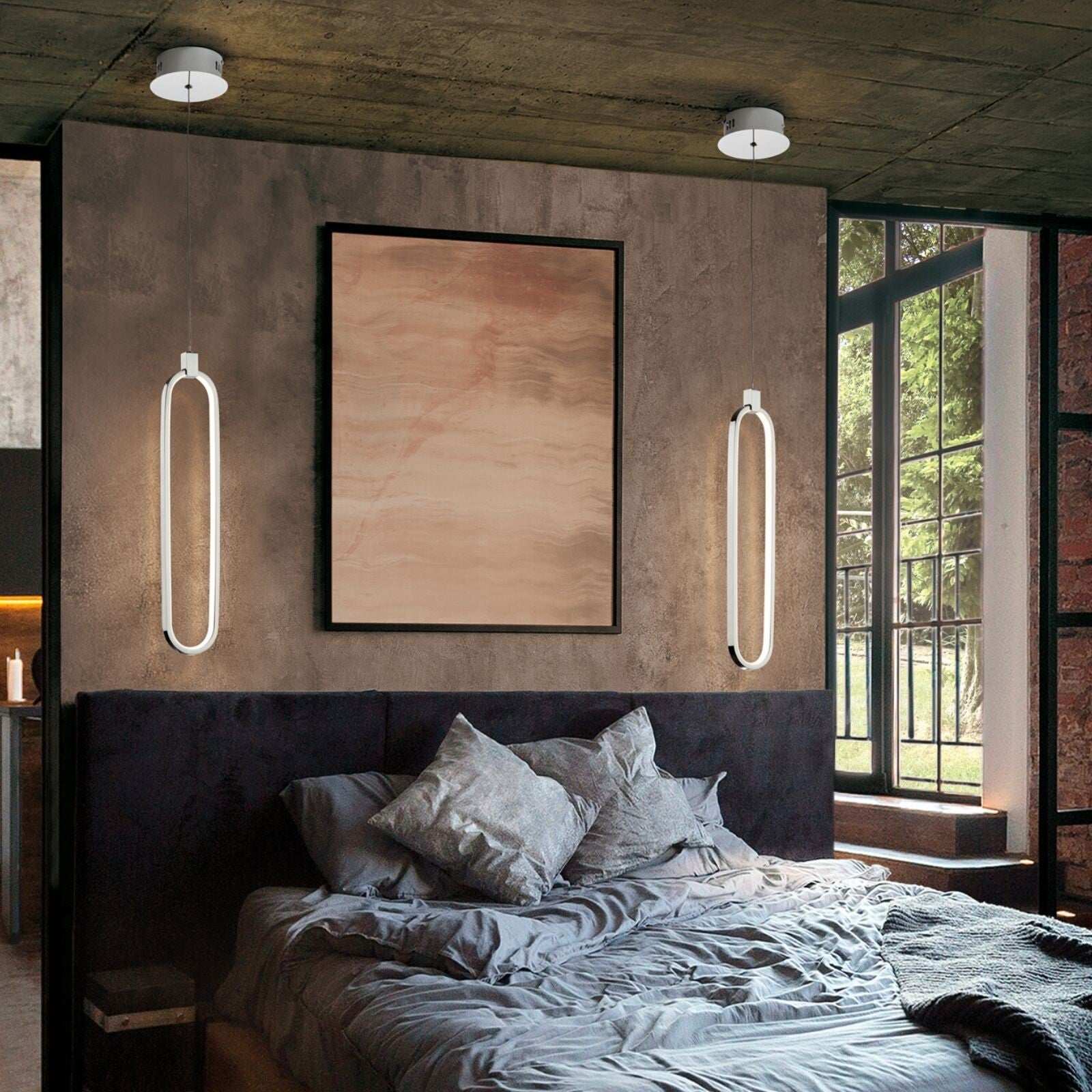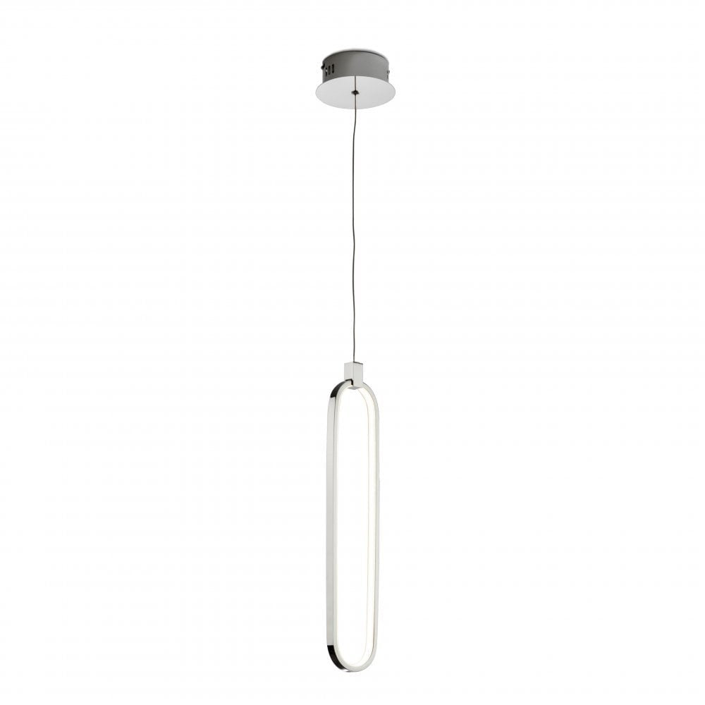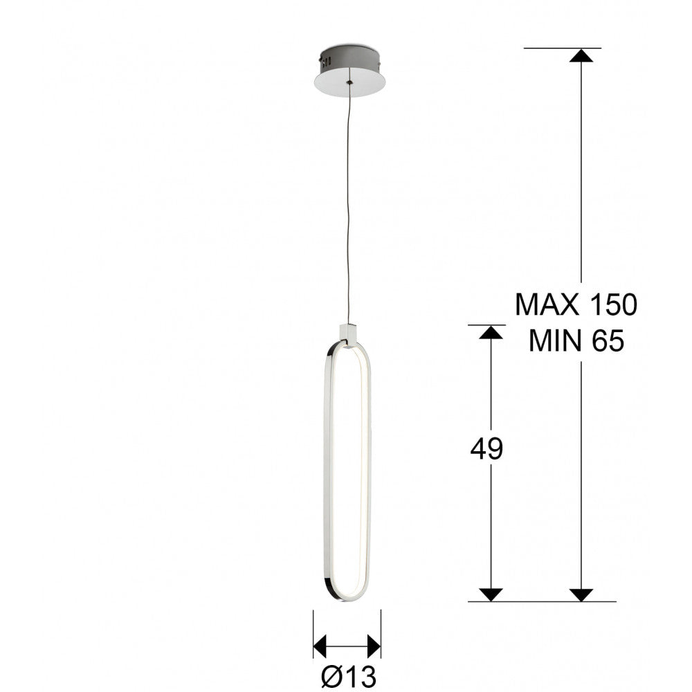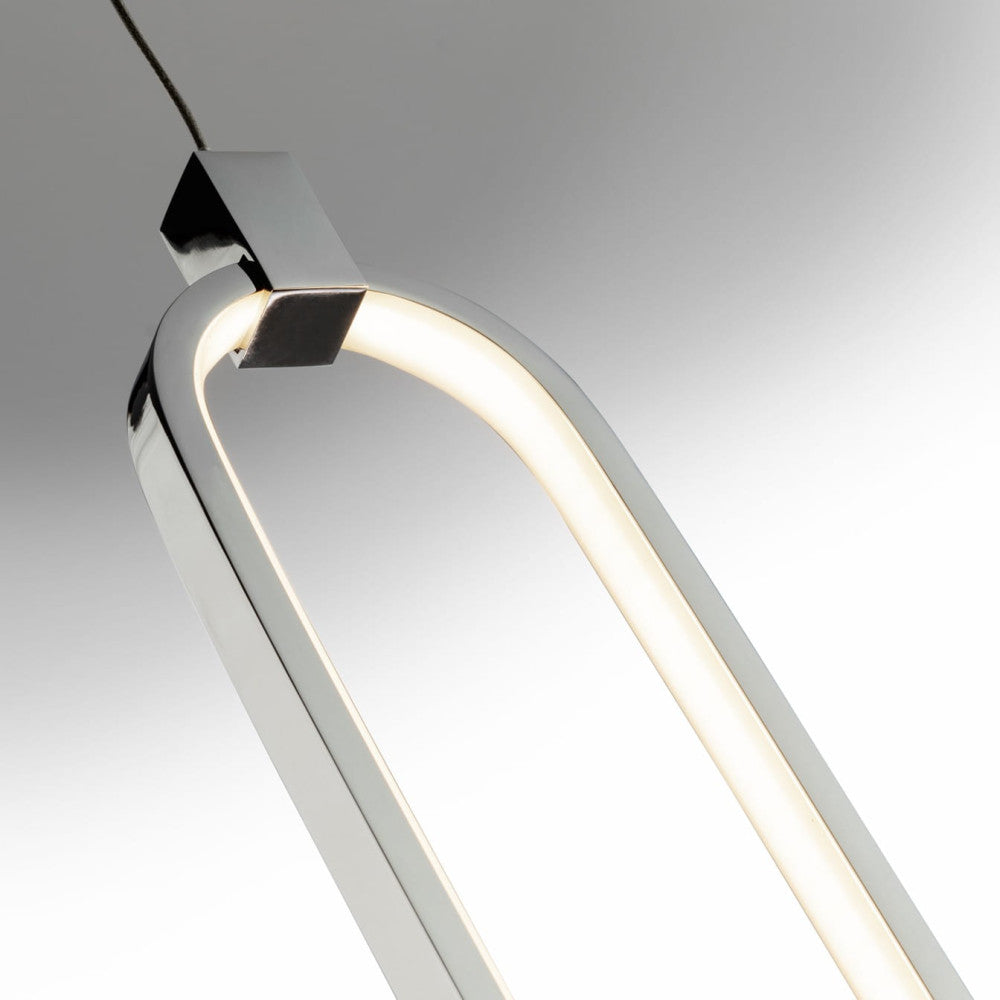 Candeeiro de 1 luz LED realizado em alumínio com acabamento crómio. Difusores de silicone opalino. Regulável em altura. 13W LED, 1.170 lm, 3.000 K.