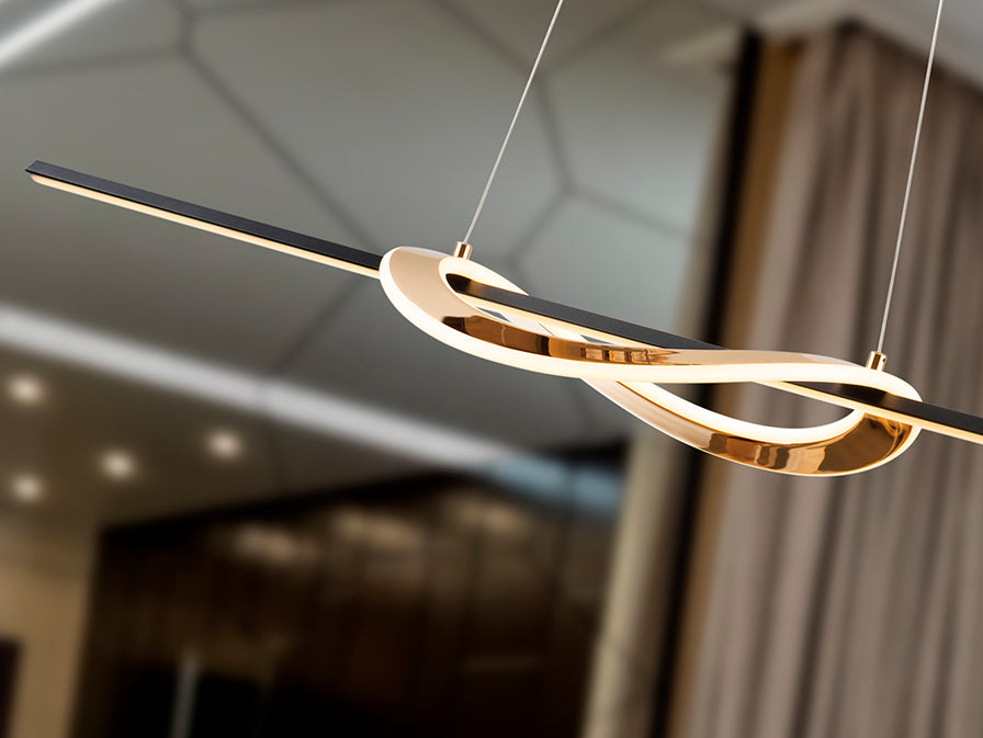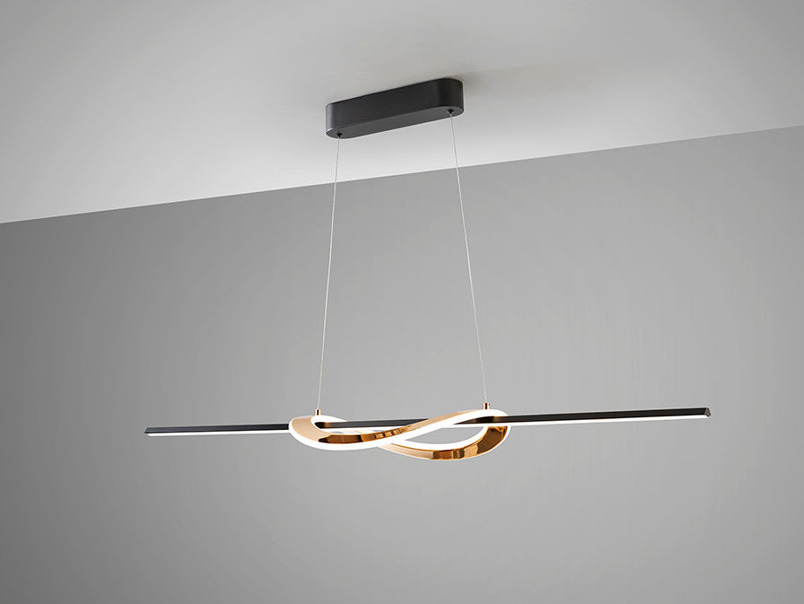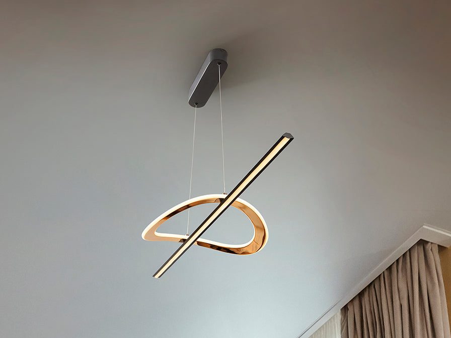 O candeeiro Enora combina sofisticação e tecnologia, sendo ideal para salas de estar, salas de jantar ou quartos modernos. Realizado em alumínio e aço, apresenta acabamento em dourado brilho e preto mate, com difusor de silicone opalino que proporciona luz uniforme e acolhedora. A altura é regulável e inclui comando à distância, permitindo ajustar facilmente a intensidade e a temperatura da luz (2700-5000K). Compatível com a aplicação TUYA, possibilita controlar a iluminação a partir do seu smartphone ou tablet.