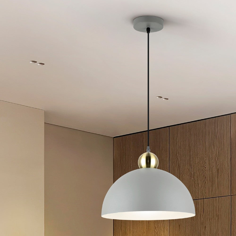 O candeeiro suspenso Polo apresenta um design elegante e contemporâneo, combinando o acabamento cinza claro acetinado com um subtil detalhe em dourado, criando uma peça versátil e sofisticada para diversos ambientes. Fabricado em metal, é ideal para salas de jantar, cozinhas ou zonas de passagem, proporcionando uma iluminação funcional e decorativa.