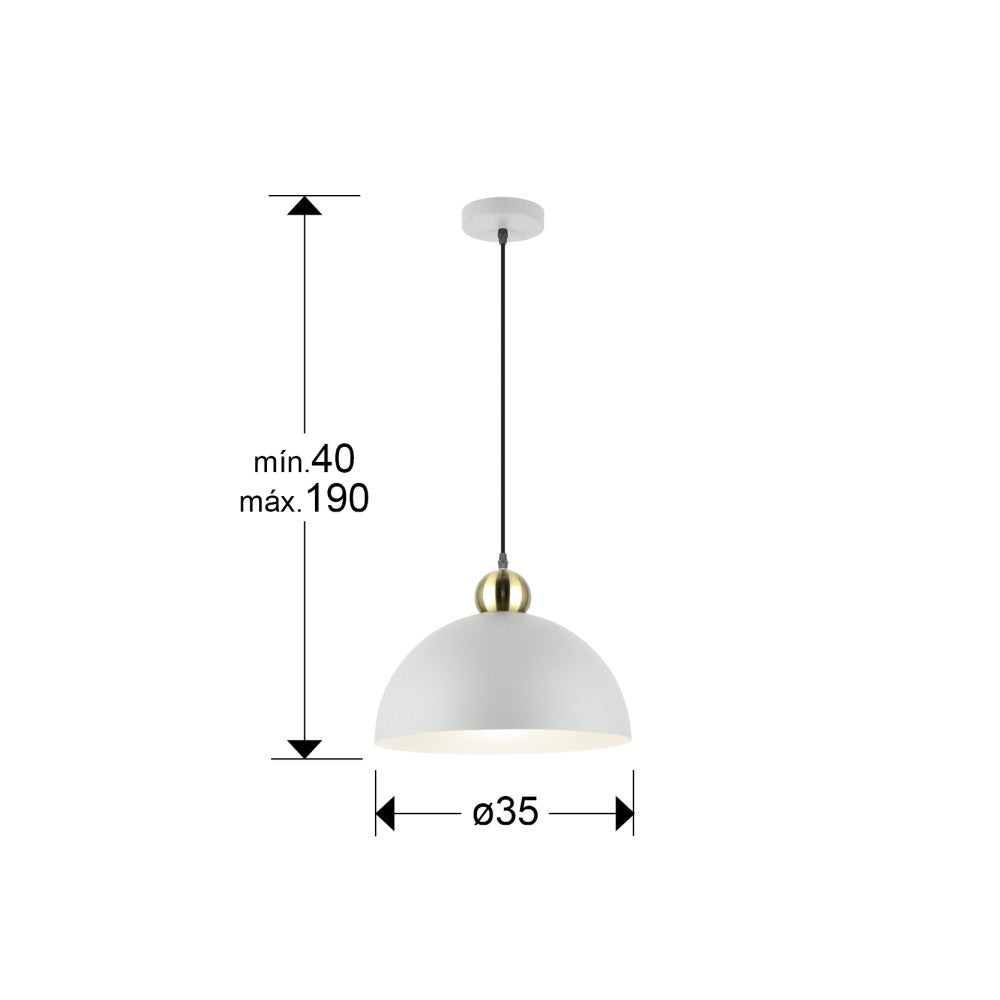 A altura é regulável até 190 cm, permitindo adaptar o candeeiro à altura do teto e ao espaço pretendido. Compatível com lâmpada E27 LED (não incluída), oferece flexibilidade na escolha da intensidade e tonalidade da luz.