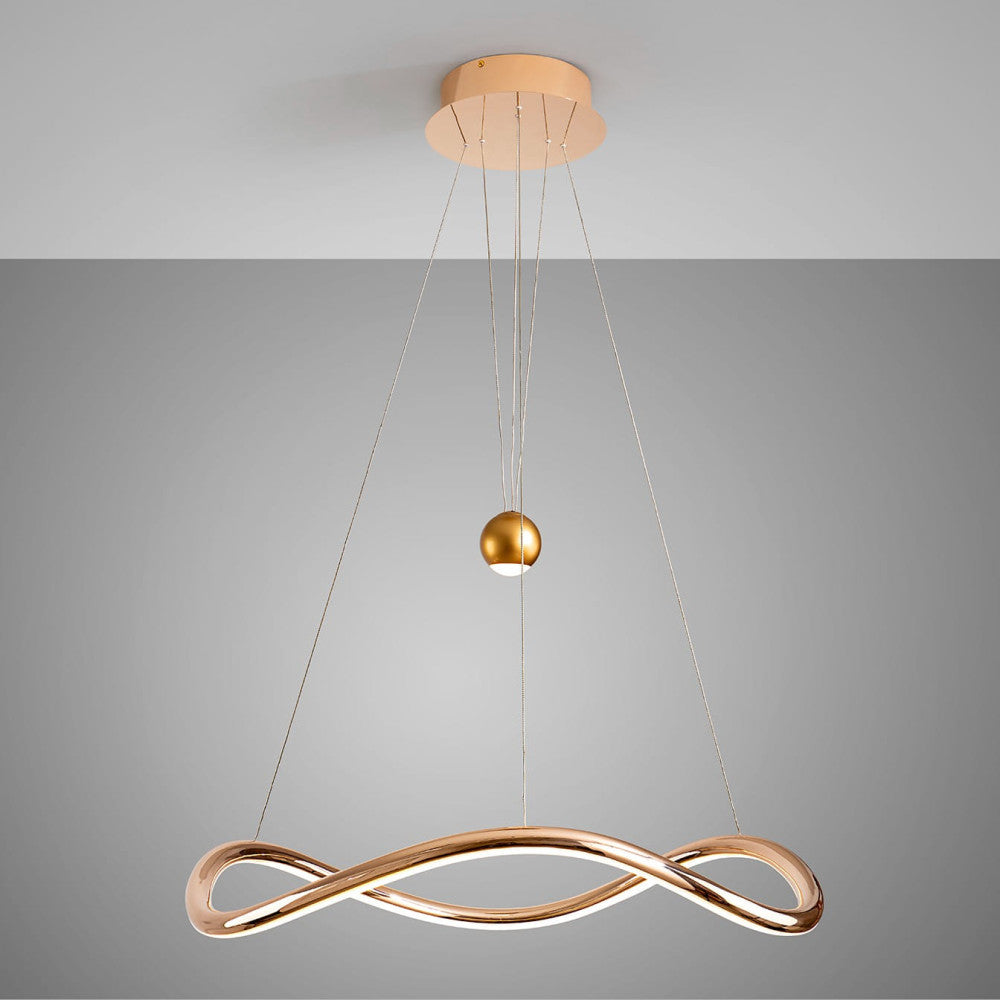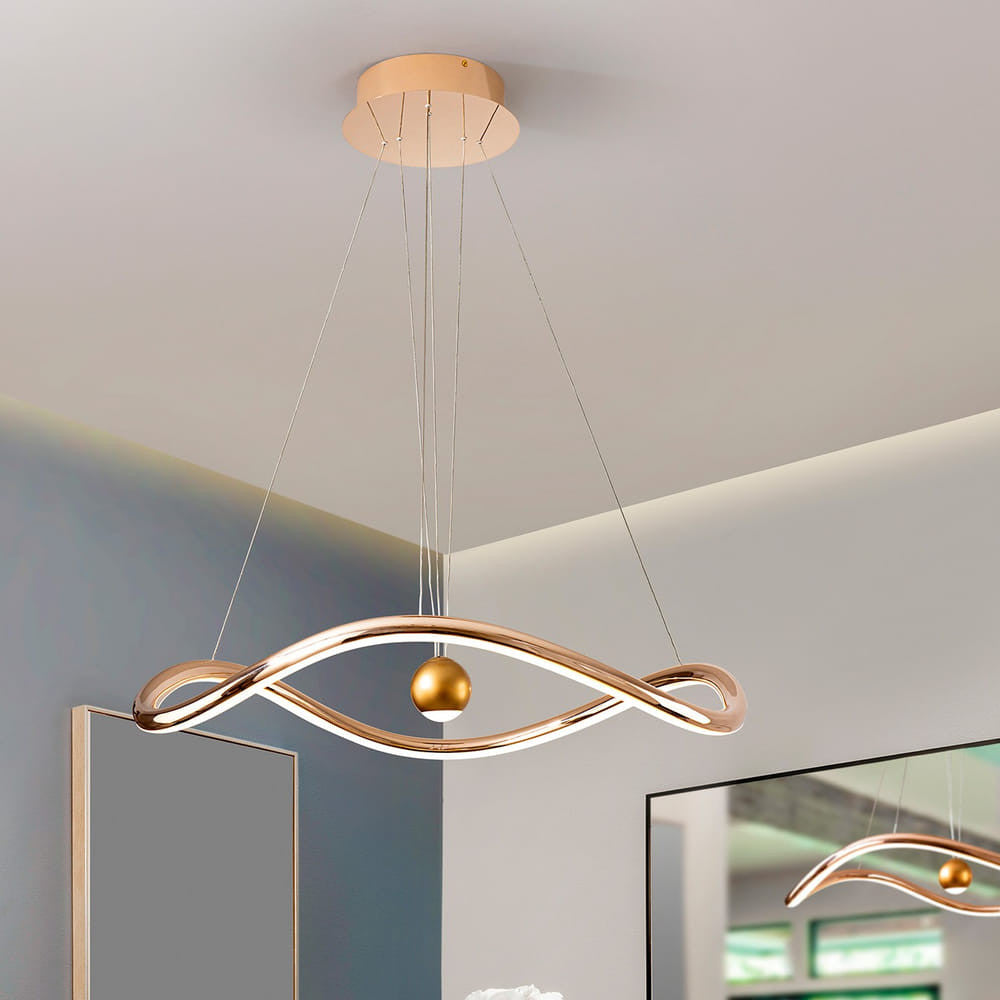 O candeeiro de teto Romina destaca-se pelo seu design elegante e contemporâneo, ideal para salas de estar, salas de jantar ou espaços modernos. Fabricado em alumínio e aço com acabamento em dourado brilho, possui difusor de silicone opalino que proporciona uma iluminação suave e uniforme.