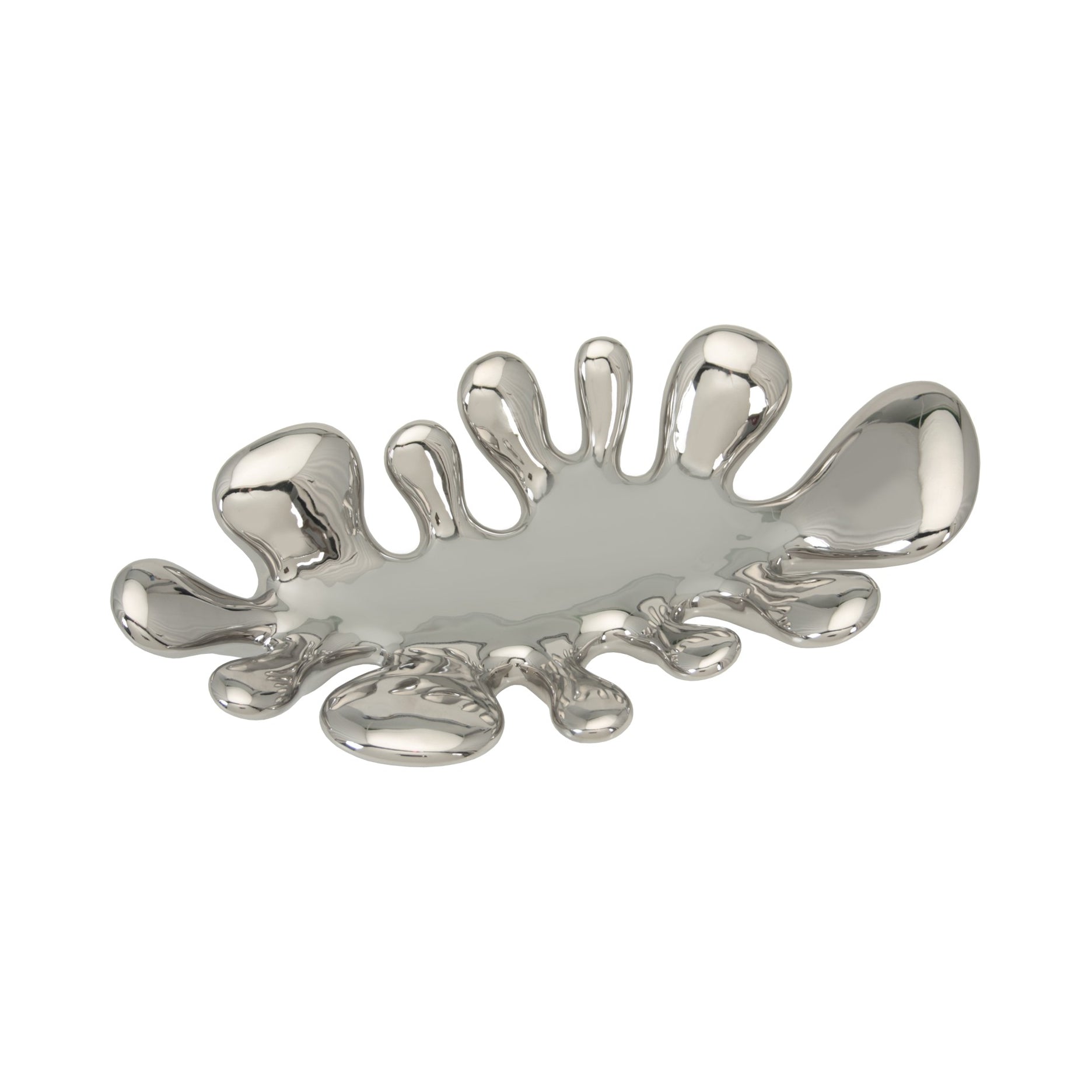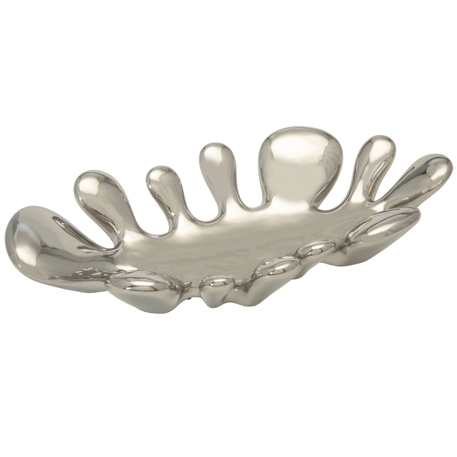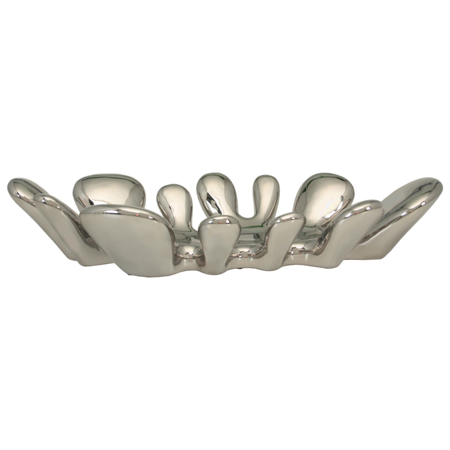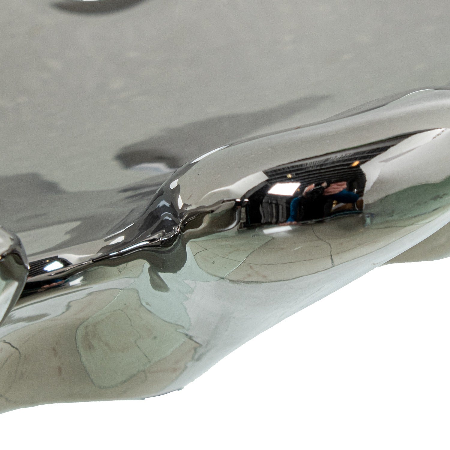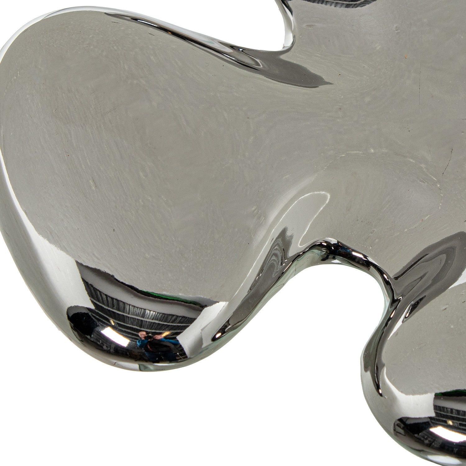 O Centro de Mesa Splash Cromado é uma peça de design arrojado e contemporâneo, ideal para quem procura adicionar um toque moderno e sofisticado à decoração. Com a sua forma inspirada no movimento fluido de um salpico (“splash”), esta peça em cerâmica cromada de acabamento brilhante reflete a luz de forma deslumbrante, criando um efeito visual único.