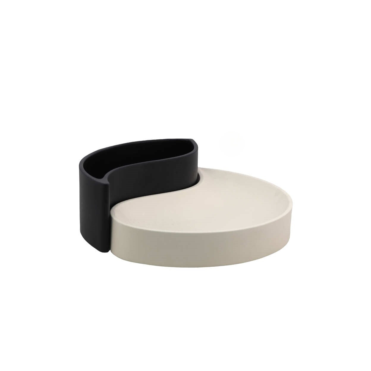 Centro Mesa Yin Yang, em cerâmica, uma peça em creme, outra em preto, que se complementam.