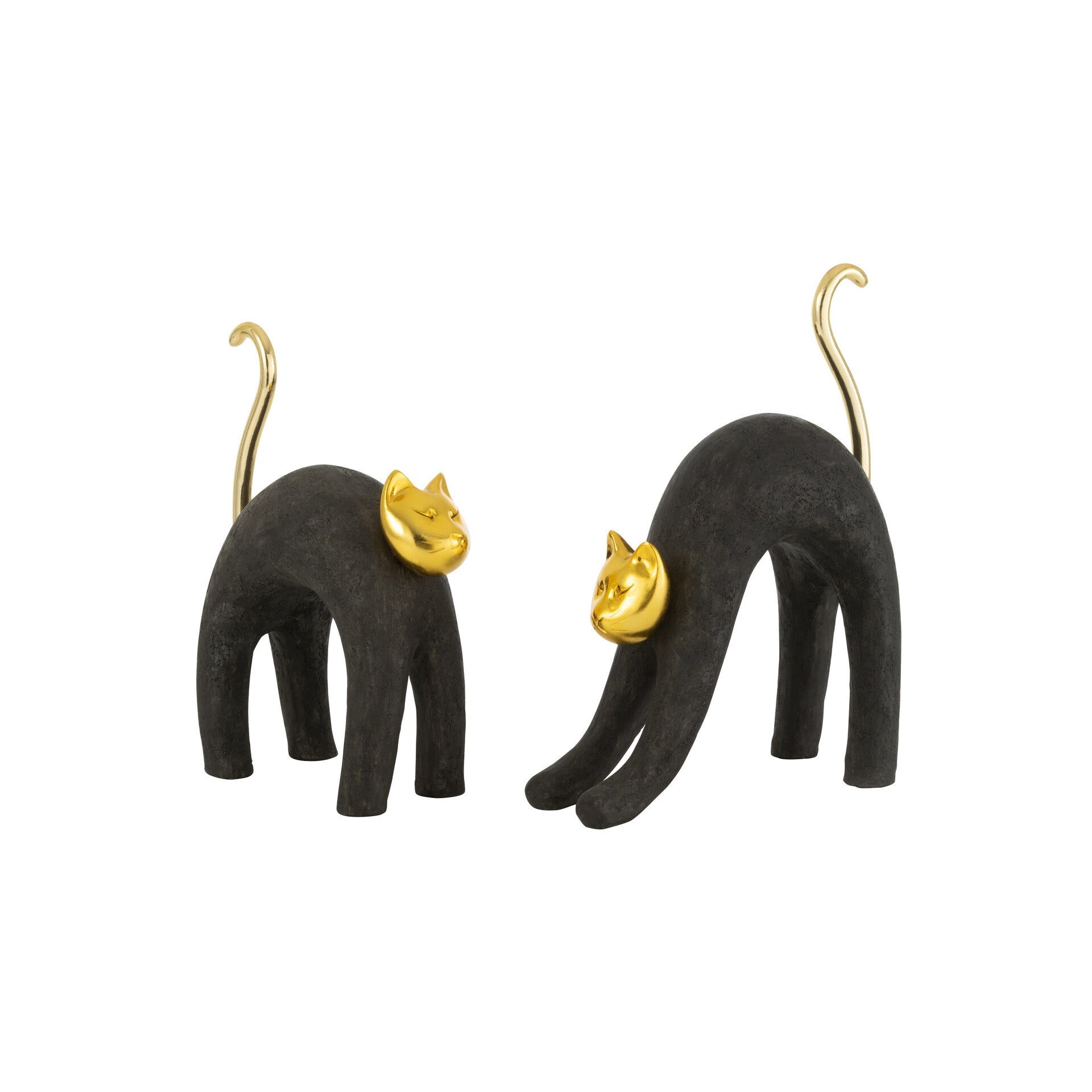 Esta peça única combina graciosamente a beleza do preto com pormenores dourados que emanam sofisticação e charme. Cada detalhe desta escultura foi meticulosamente trabalhado em resina de alta qualidade, proporcionando durabilidade e uma estética detalhada. Os traços delicados capturam a expressão curiosa e cativante de um gato, tornando esta escultura uma obra de arte para qualquer espaço.