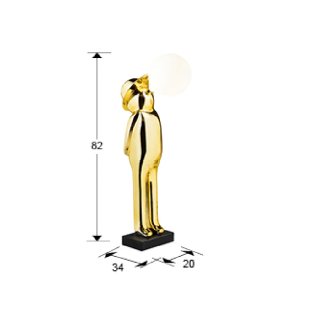 Escultura Mr Bubble, em fibra de vidro e resina de poliéster, acabamento banhado a ouro brilhante, abajur acrílico esférico com acabamento opala fosco. Inclui 1 lâmpada G9 LED 6W