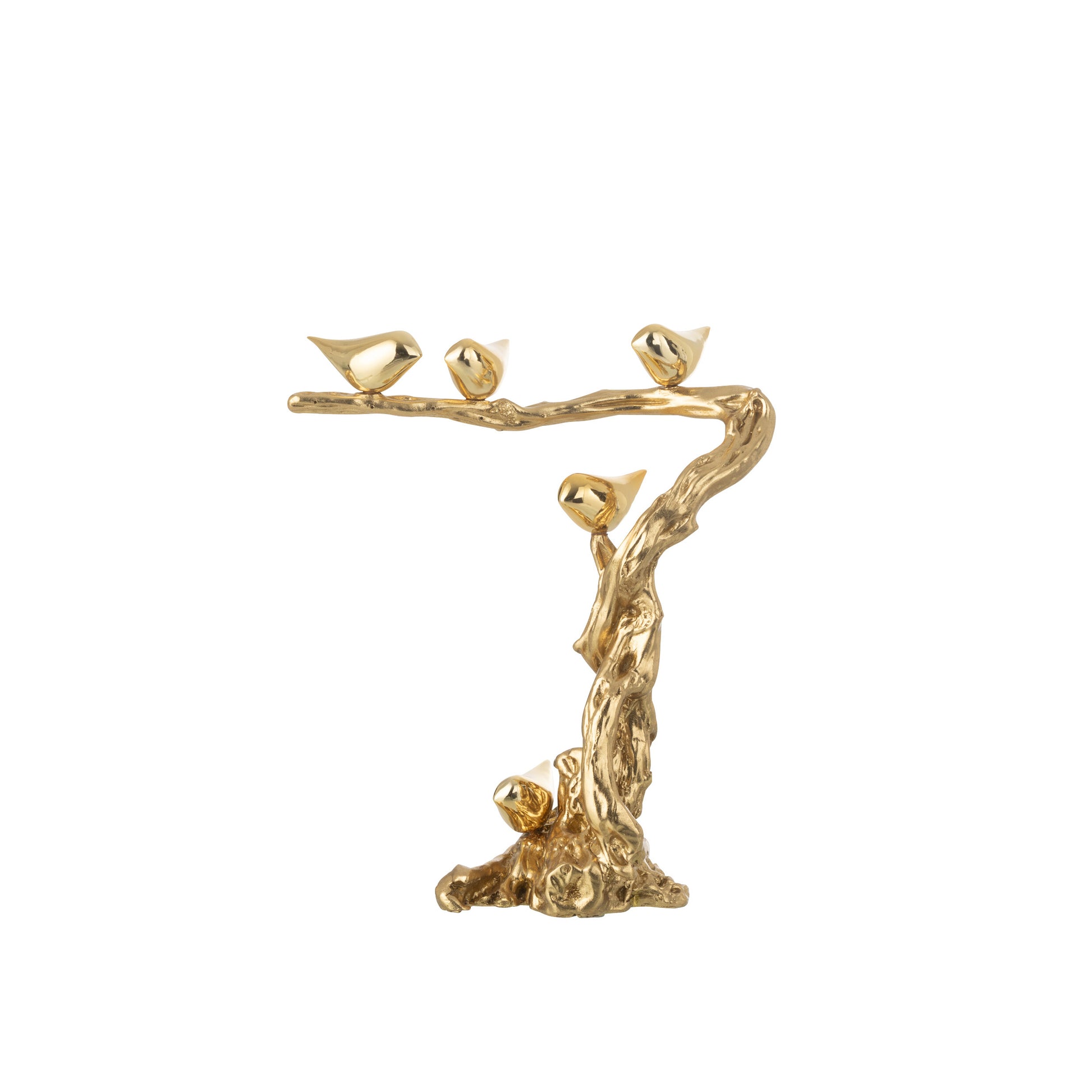 Imagine entrar numa sala e o olhar pousar, naturalmente, numa escultura que parece ter saído de um jardim eterno. Os pássaros pousados no ramo, imóveis mas cheios de vida, trazem para o seu interior a serenidade e a beleza da natureza, com o refinamento de um acabamento dourado que capta a luz e eleva qualquer decoração.