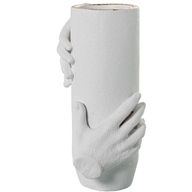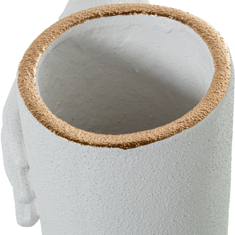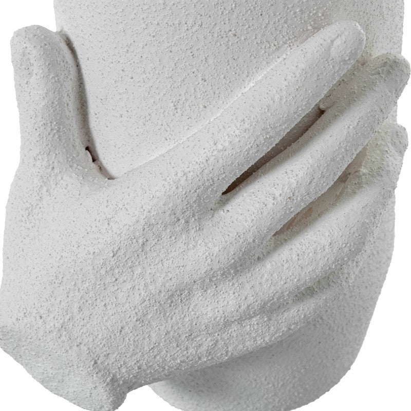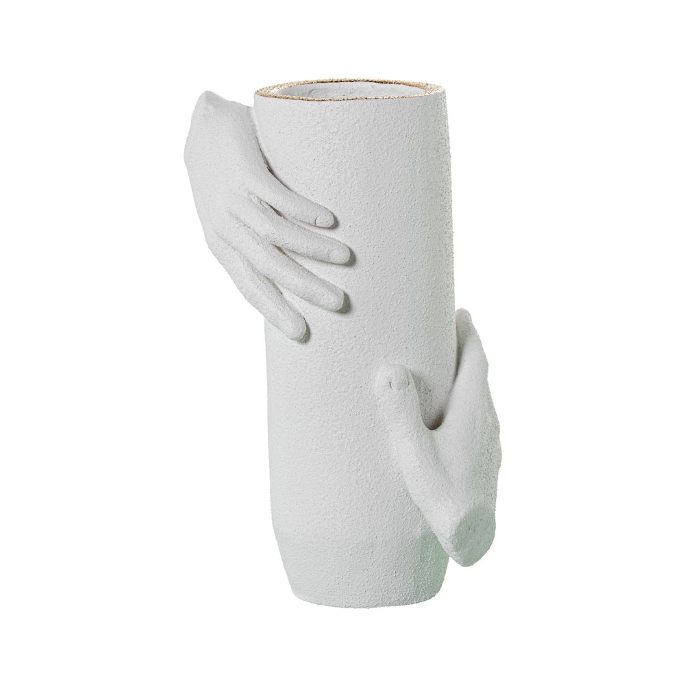 Jarra Branca texturada com mãos detalhe dourado