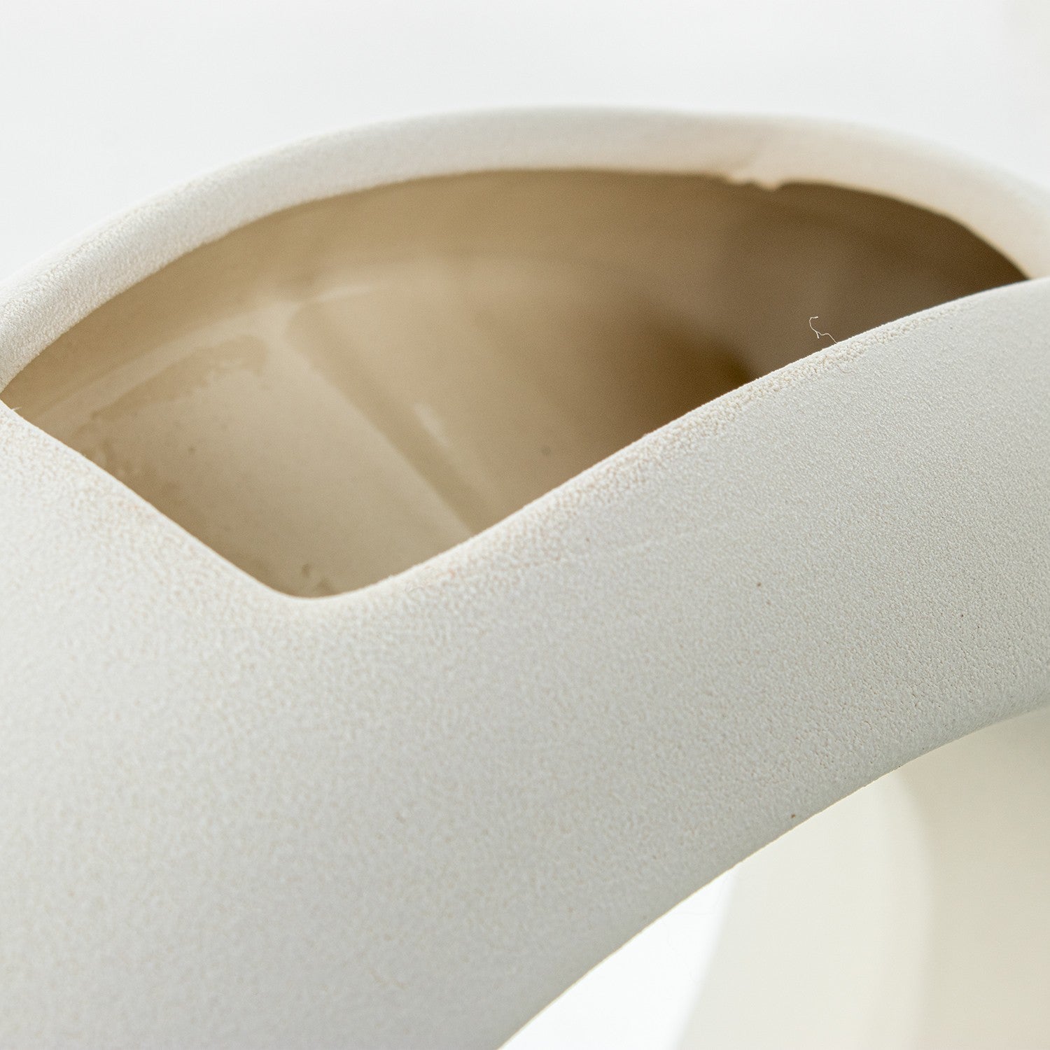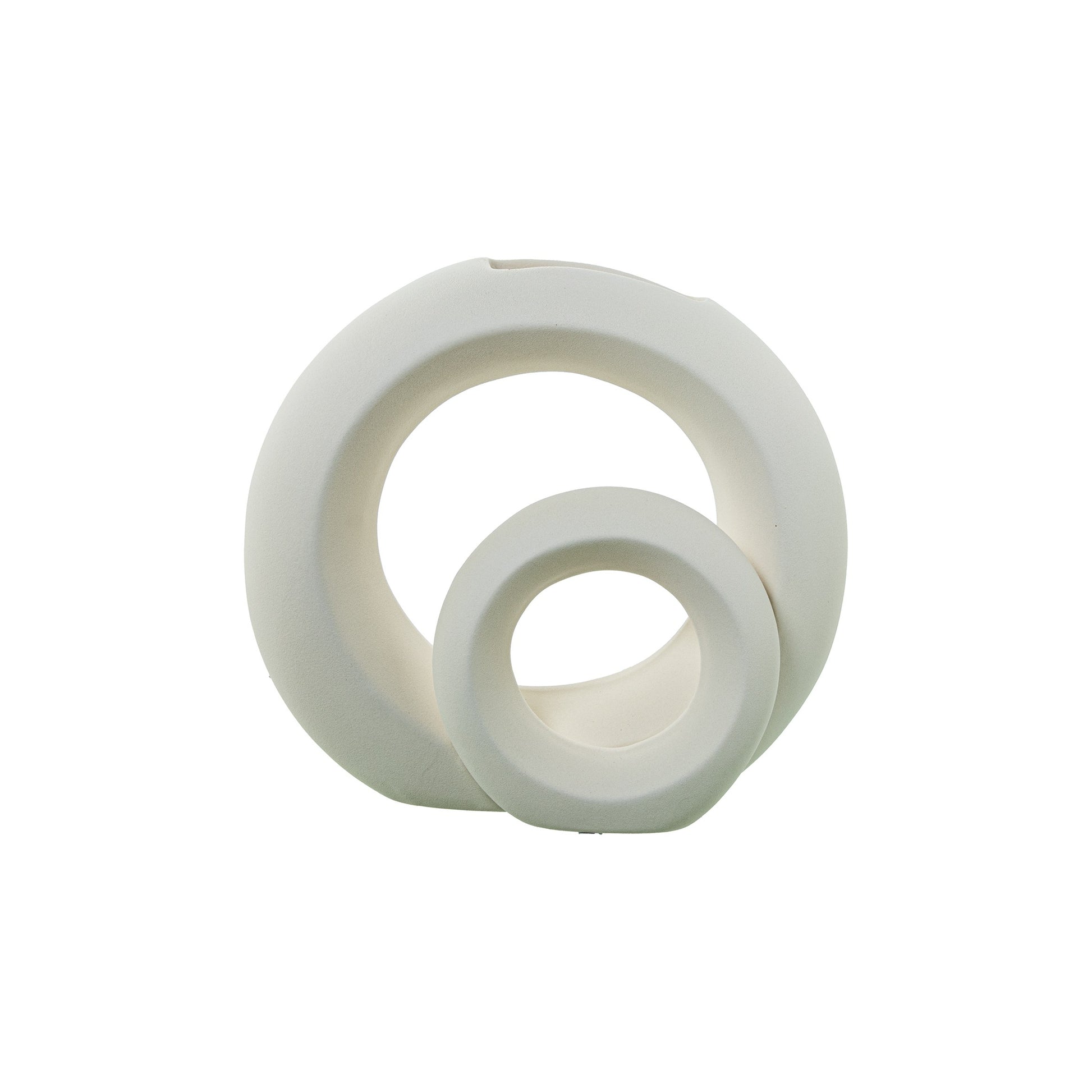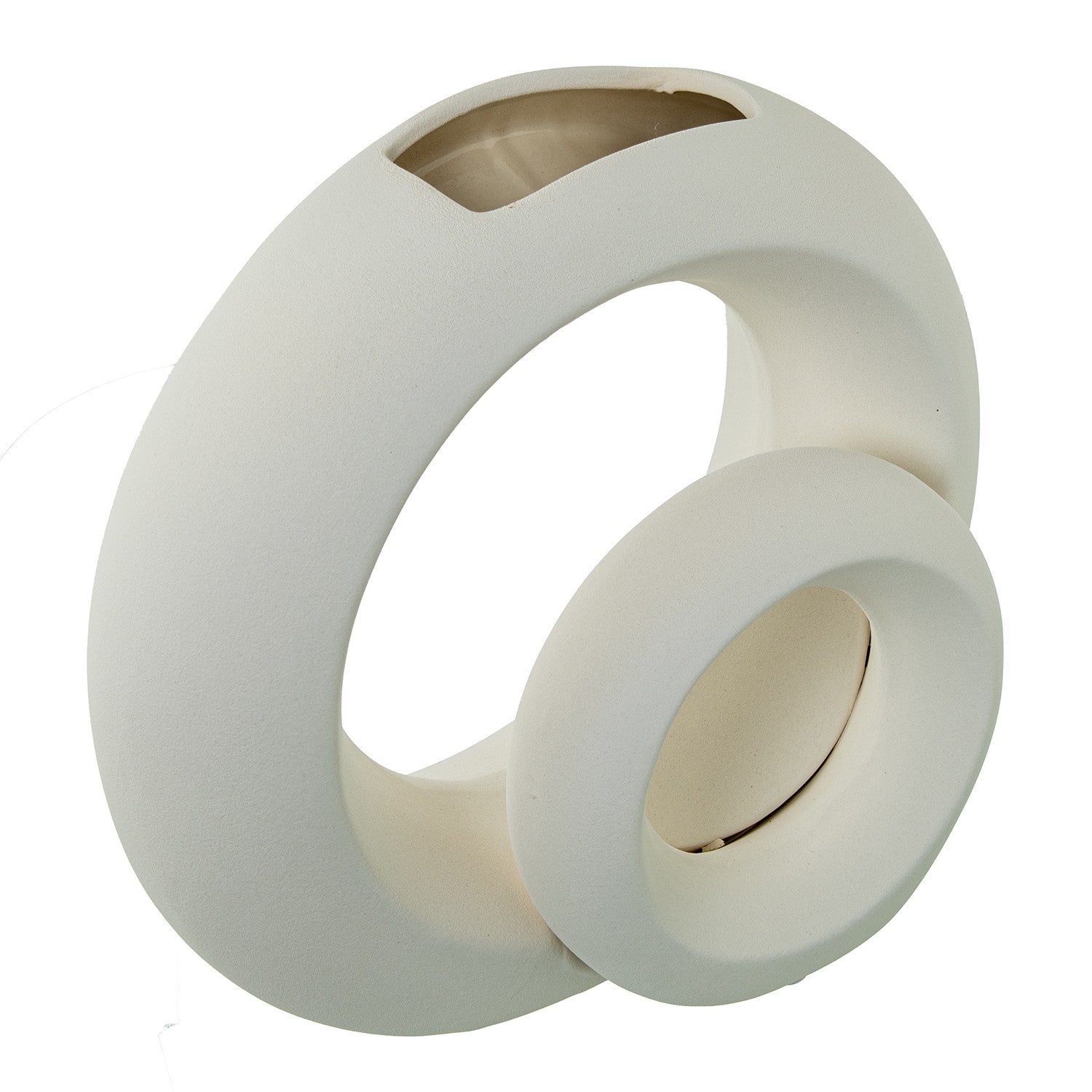 A Jarra de Cerâmica com Dois Anéis é uma peça de decoração moderna que une forma escultural e textura artesanal. Com um acabamento em tom creme texturado, transmite uma sensação orgânica e natural que se adapta harmoniosamente a qualquer estilo de interior.