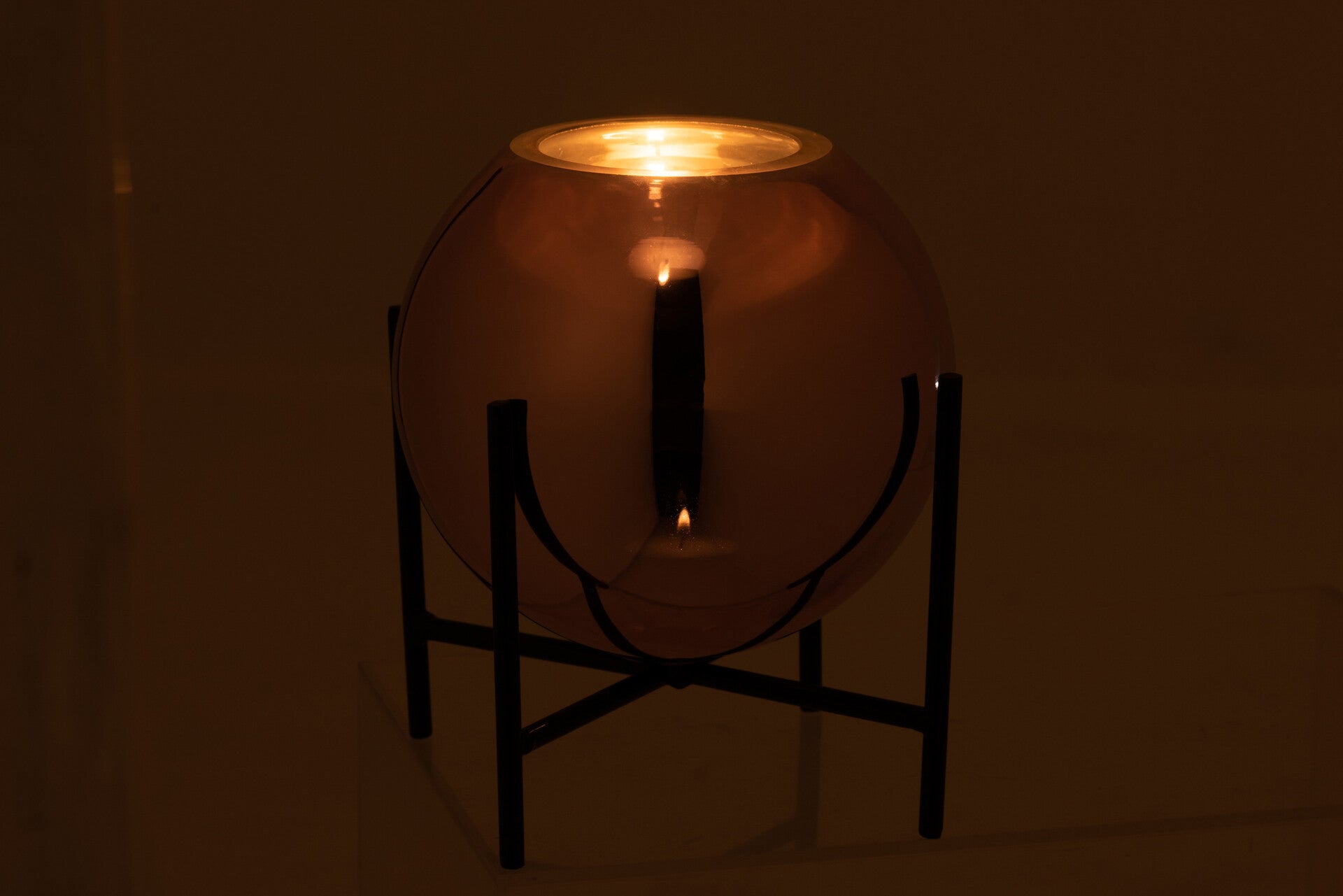 Jarra Redondo com Vidro Rosa e Pé Preto Metal.Um acessório decorativo que mistura o estilo industrial dos pés pretos com a bola de vidro rosa, num estilo delicado. Que o ajudará a completar as prateleiras, aparadores ou cómodas em qualquer divisão da sua casa, acrescentando aquele toque original e exclusivo que procurava. Uma Jarra resistente e duradoura que completará a decoração da sua casa, acrescentando carácter e personalidade.