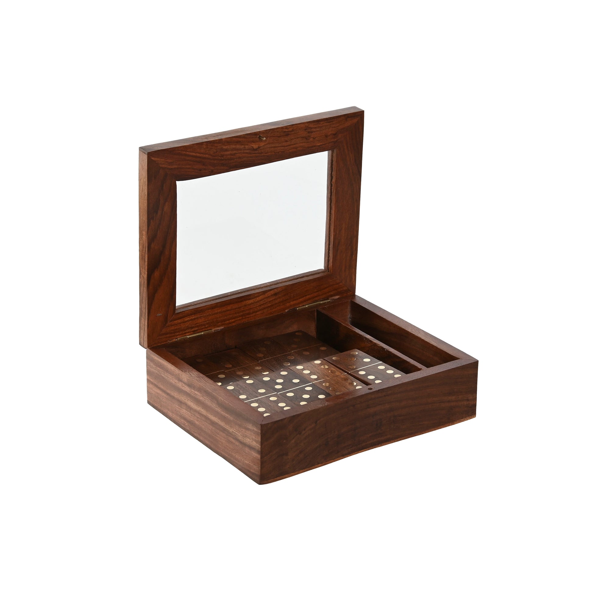 Jogo dominó caixa madeira e vidro