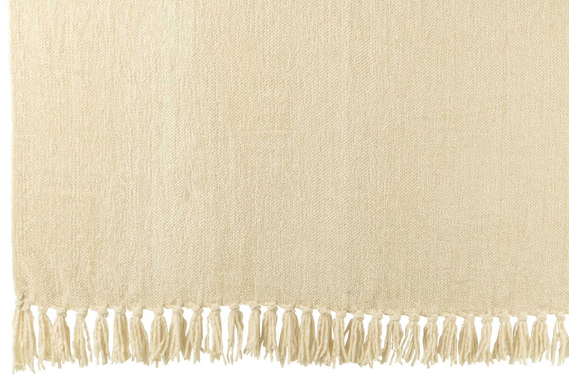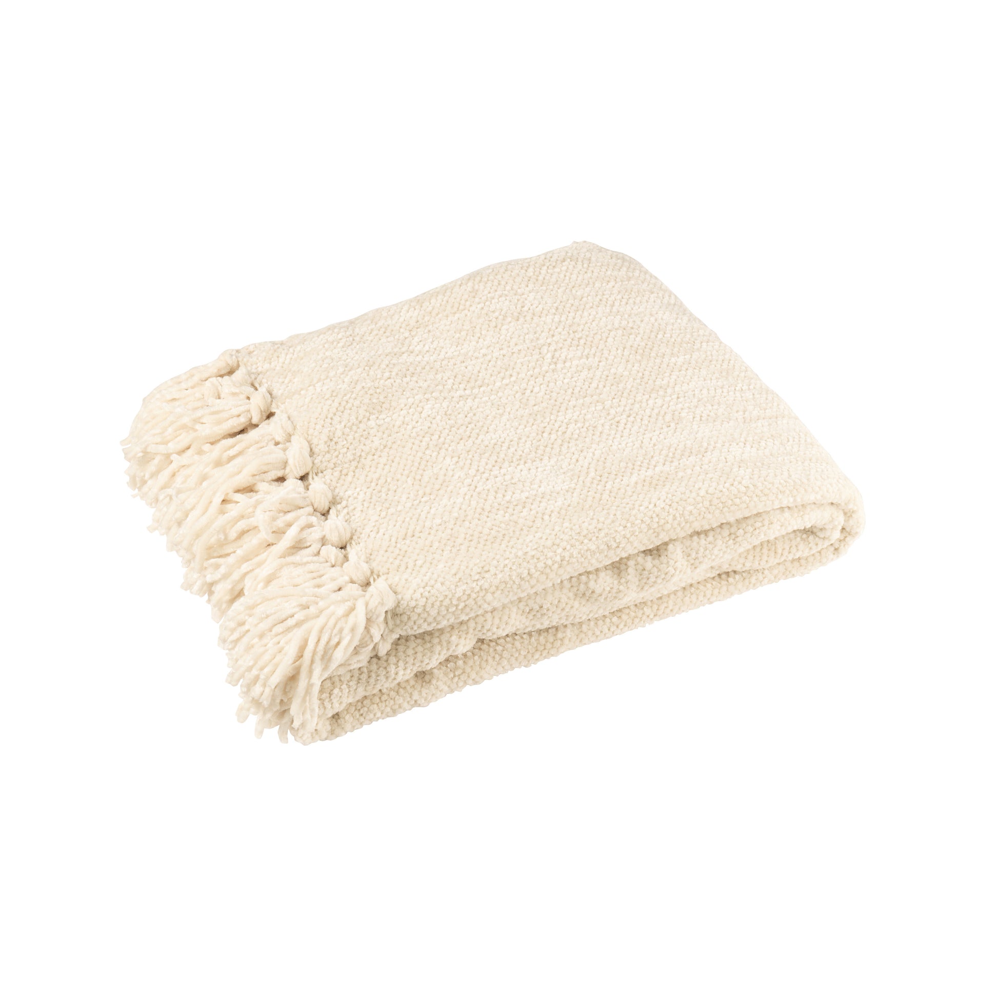 Manta Chenille bege130x180 cm. As Mantas são elementos decorativos que acrescentam um toque extra de conforto a uma peça de mobiliário e reforçam o aspecto de qualquer divisão. Acrescentam textura e são muito fáceis de integrar criando belos contrastes de cor, adaptáveis a qualquer estilo decorativo. Coloque-a na cama, combinando-a com outras diferentes cores e texturas, no apoio de braço de um sofá, no apoio de pés da sua cadeira de leitura ou dobrado sobre qualquer poltrona ou cadeira. Estas peças são os adereços perfeitos, um objeto que adorará ter sempre à mão.