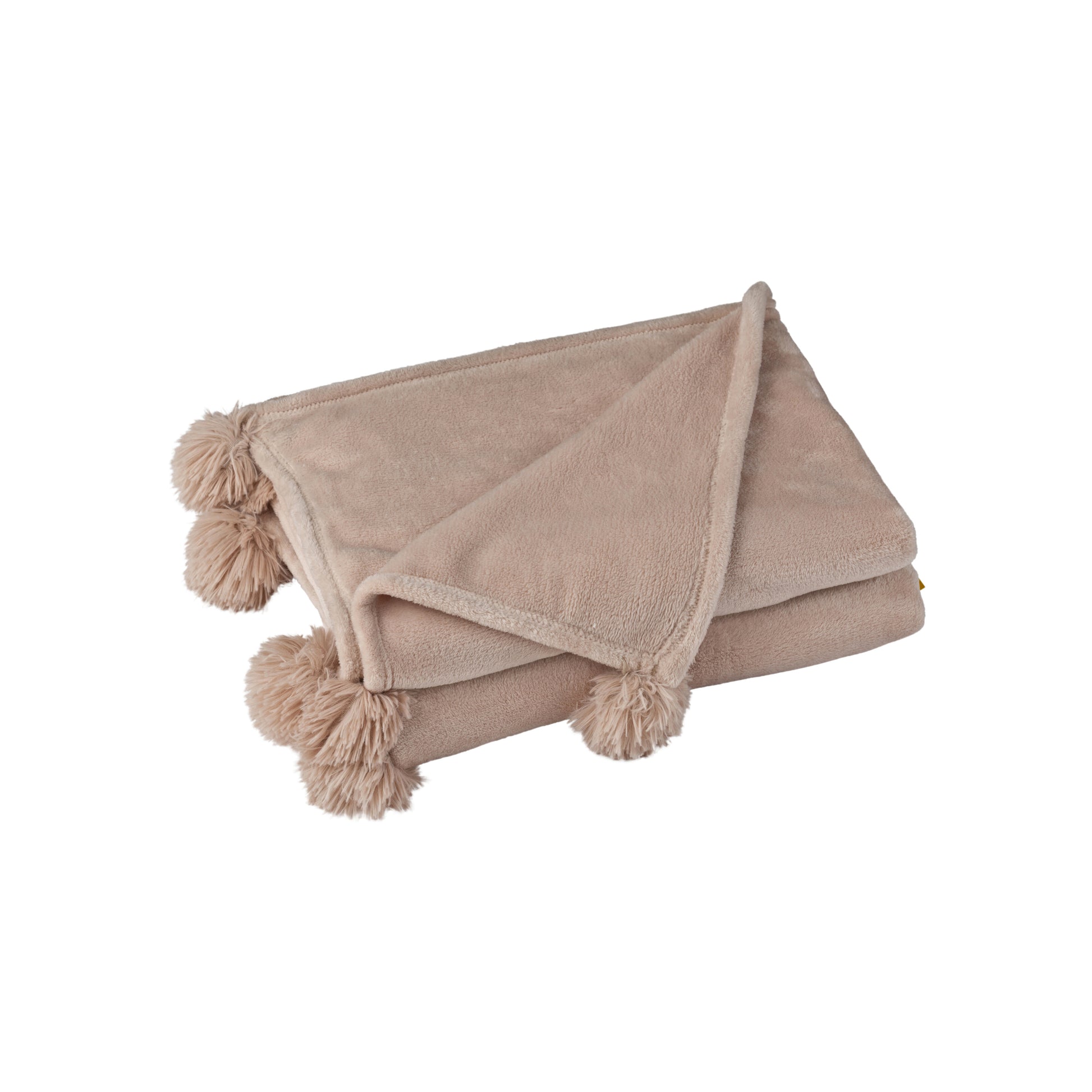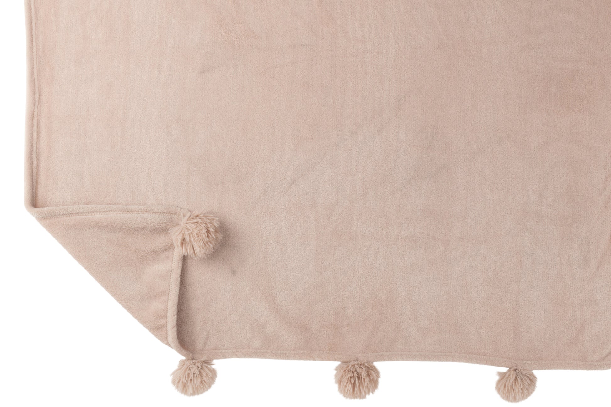 Esta manta bege com pompons é o toque de aconchego que transforma qualquer espaço num ambiente mais caloroso e elegante. Fabricada em poliéster macio, envolve-o numa sensação de conforto ideal para os dias mais frios, sendo perfeita para usar no sofá, na cama ou como detalhe decorativo.