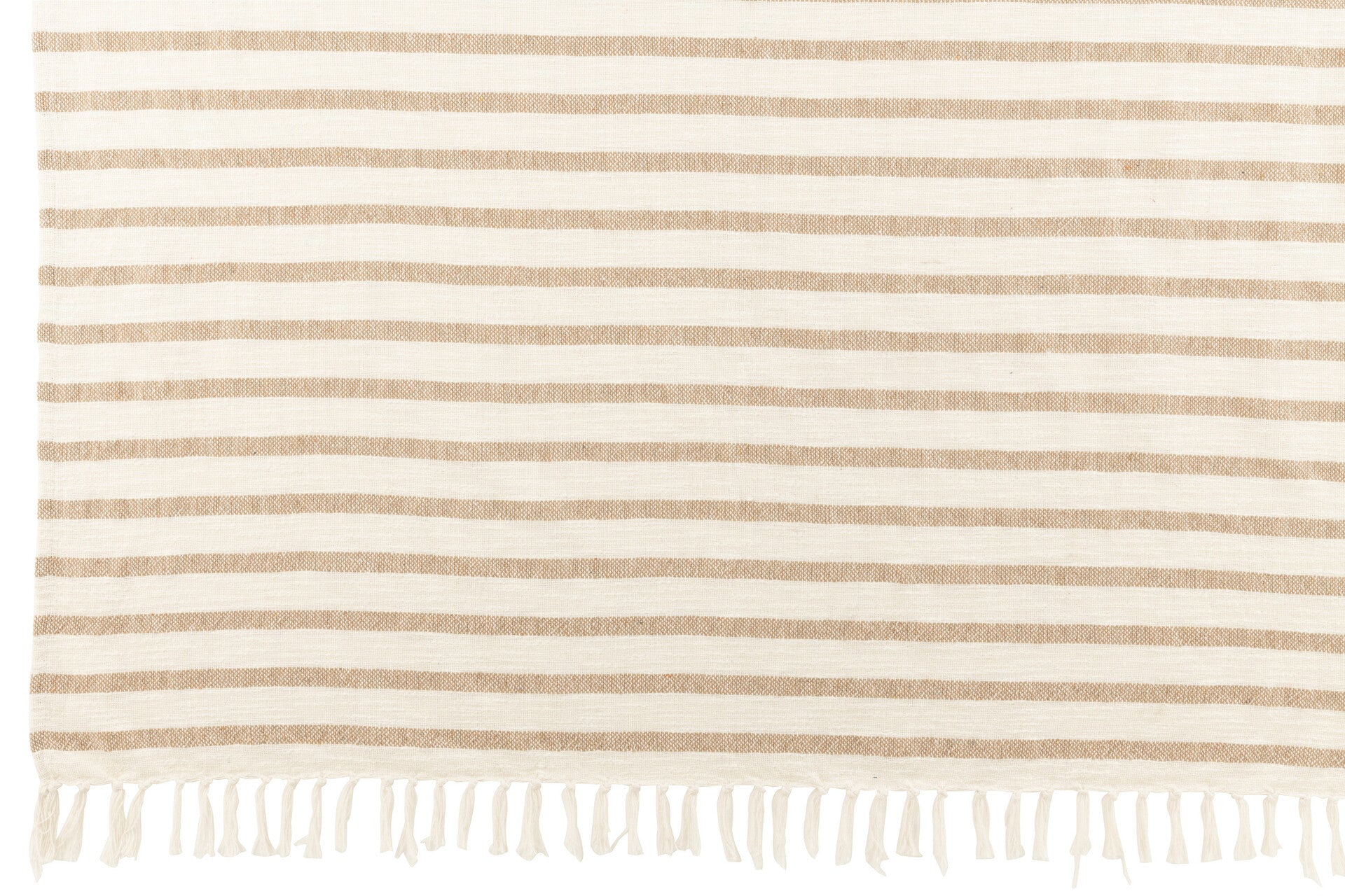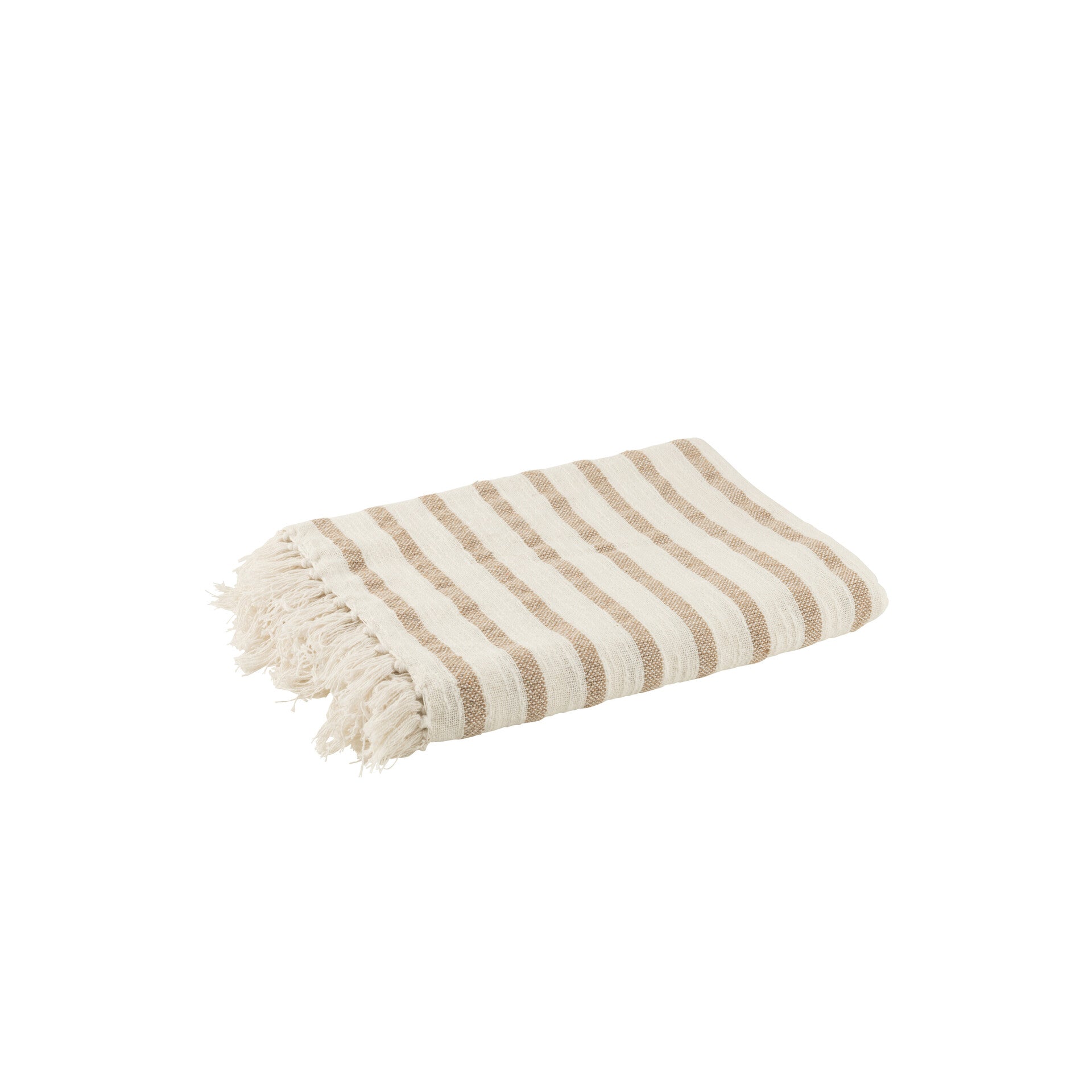 Manta Riscas Summer Branco e Bege 130x187 cm. As Mantas são elementos decorativos que acrescentam um toque extra de conforto a uma peça de mobiliário e reforçam o aspecto de qualquer divisão. Acrescentam textura e são muito fáceis de integrar criando belos contrastes de cor, adaptáveis a qualquer estilo decorativo. Coloque-a na cama, combinando-a com outras diferentes cores e texturas, no apoio de braço de um sofá, no apoio de pés da sua cadeira de leitura ou dobrado sobre qualquer poltrona ou cadeira. Estas peças são os adereços perfeitos, um objeto que adorará ter sempre à mão.