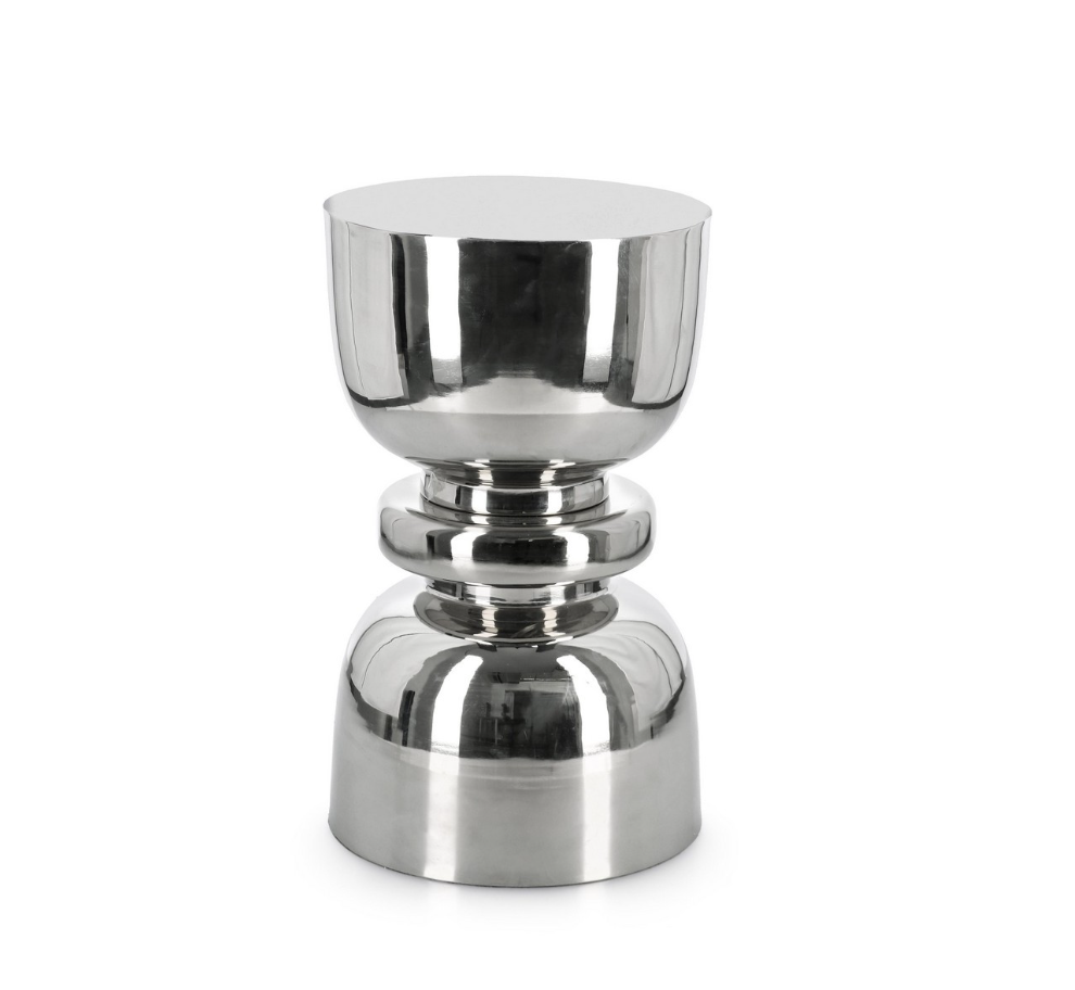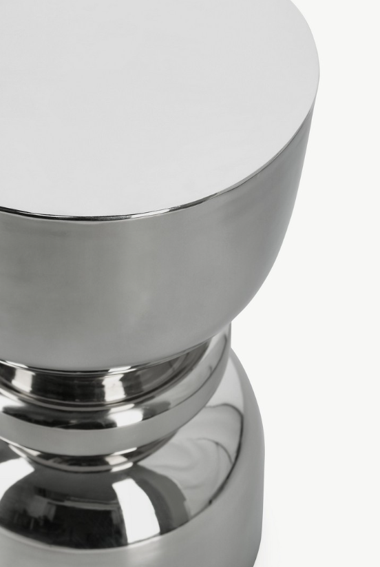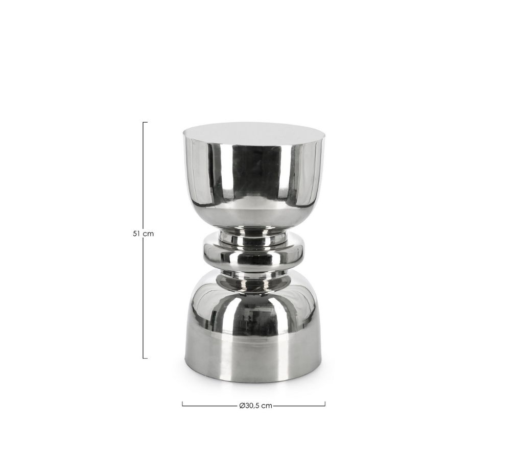 A Mesa de Apoio Animesh na versão cromada apresenta a mesma silhueta escultural em forma de ampulheta, agora com um acabamento em aço niquelado brilhante. Elegante e contemporânea, integra-se na perfeição em interiores minimalistas, industriais ou nórdicos, acrescentando um toque metálico refinado a qualquer sala de estar ou quarto.