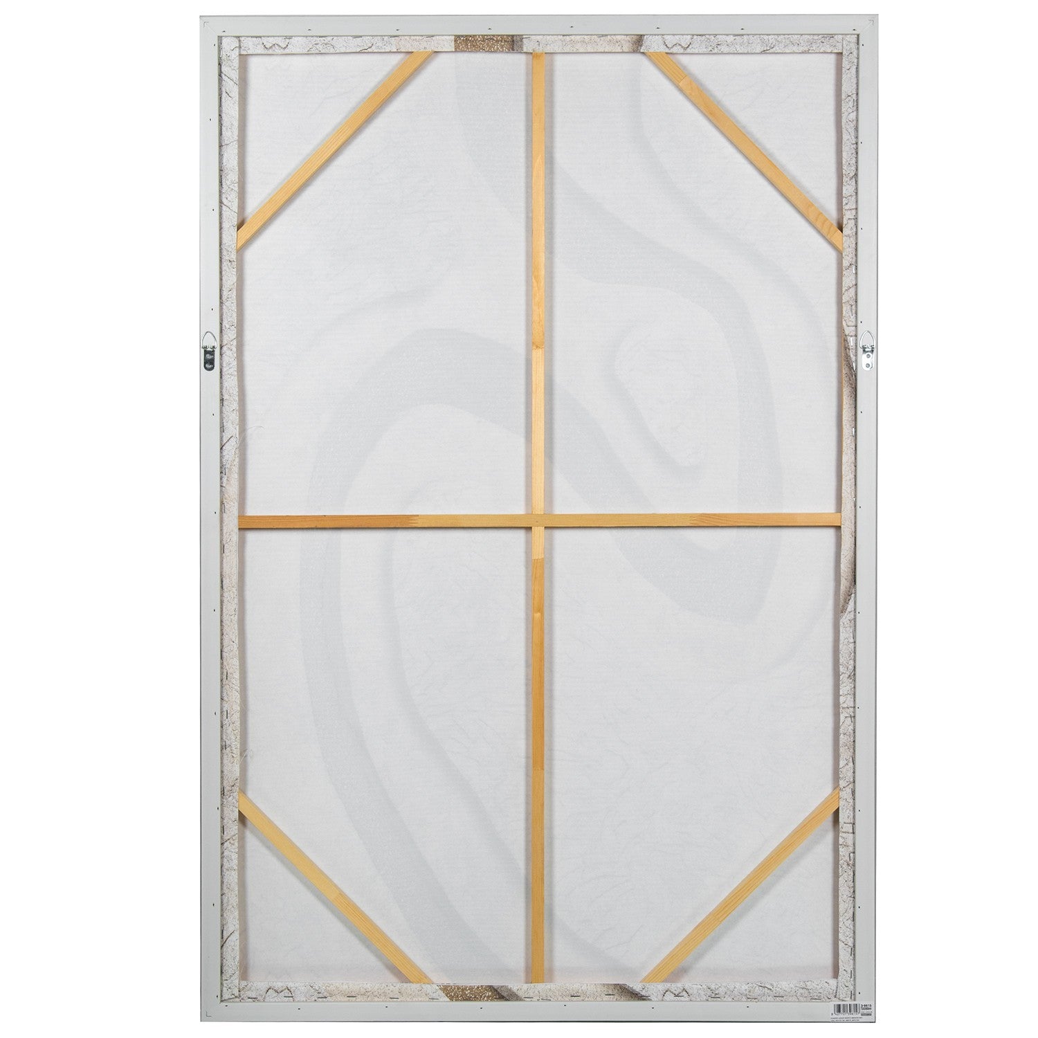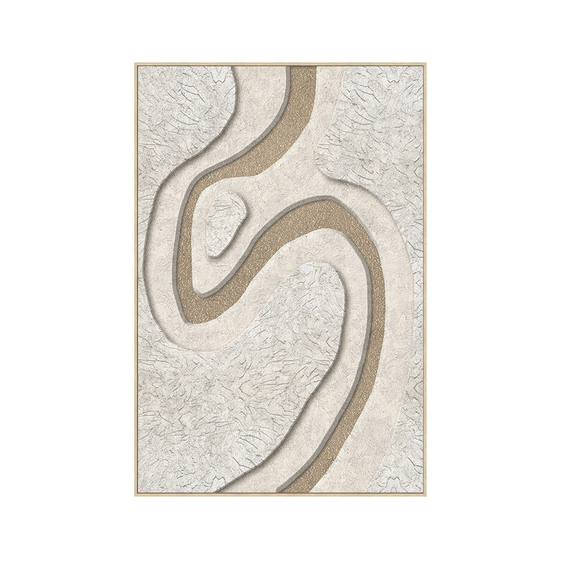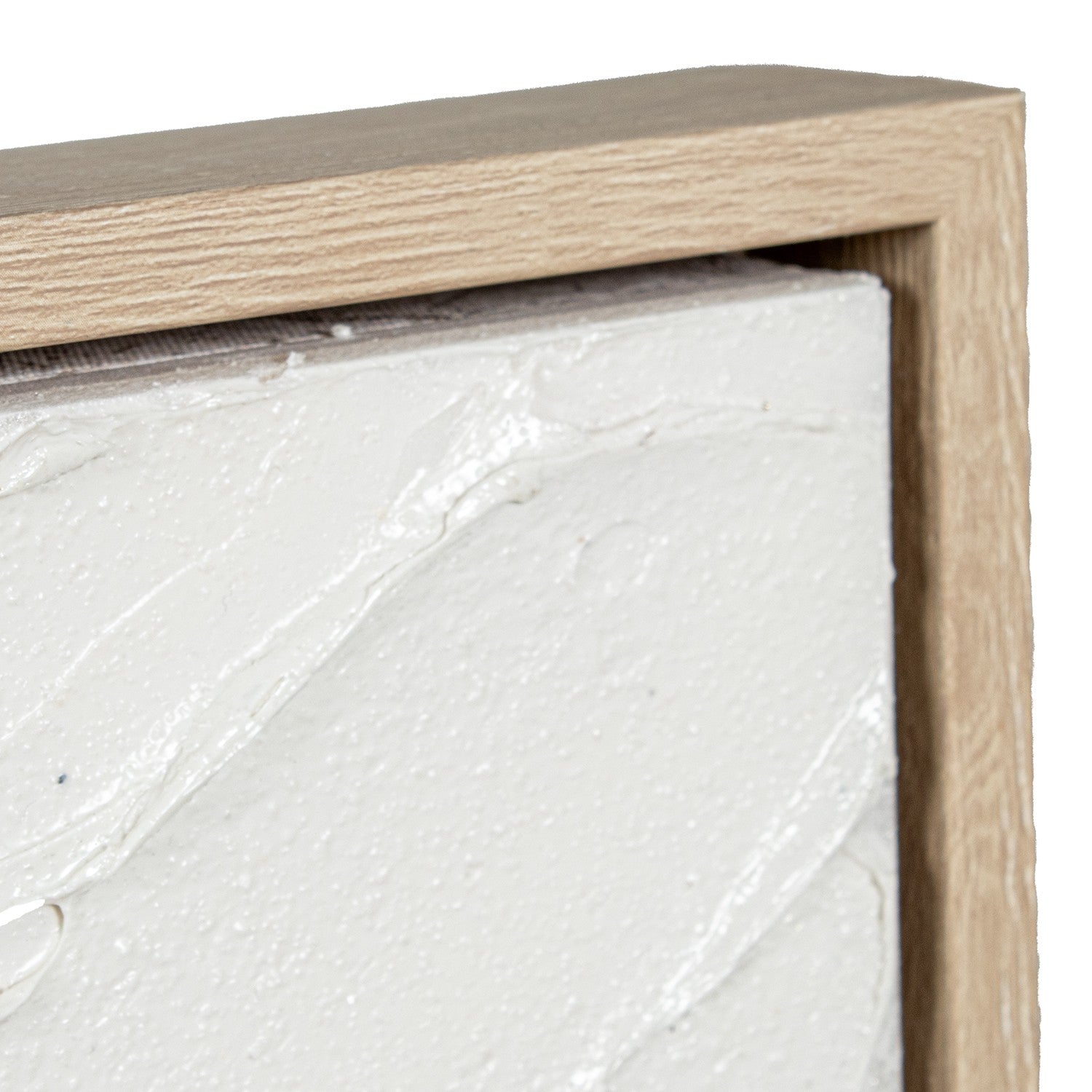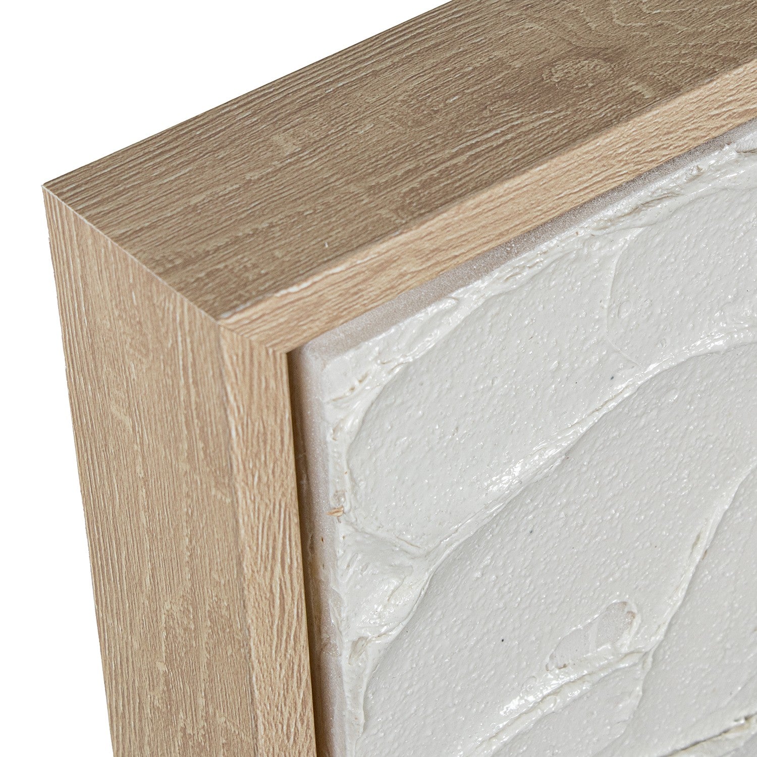 Quadro texturado branco e areia com moldura em madeira 80x120 cm