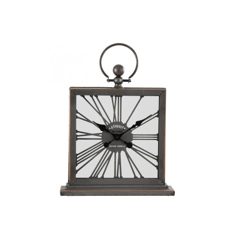 Relógio de mesa, uma antiguidade Industrial de Paris. Feito em vidro e zinco da marca Vical Home. Relógio de mesa de numeração romana, em estilo industrial. Este relógio de mesa com o seu punho em zinco rústico com algarismos romanos protegidos por um vidro será adequado para uma secretária ou aparador de estilo clássico.