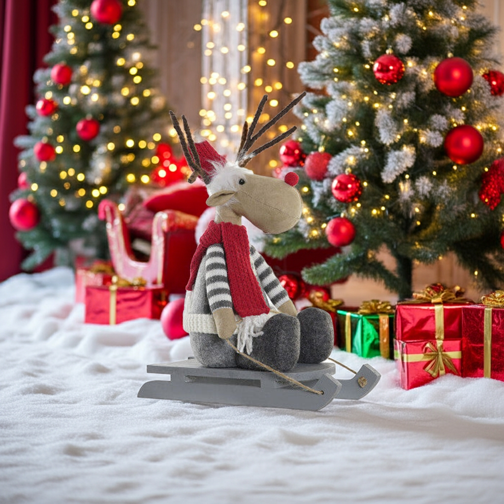 Adicione alegria à sua casa com nossa Rena em Trenó de 37 cm. Feita de poliéster de alta qualidade, esta rena realista está sentada num trenó de madeira, criando uma decoração de Natal encantadora. Com 37 cm de altura, é perfeita para destacar a magia do Natal em qualquer ambiente. Adquira a sua agora e transforme sua decoração com um toque de elegância rústica festiva.