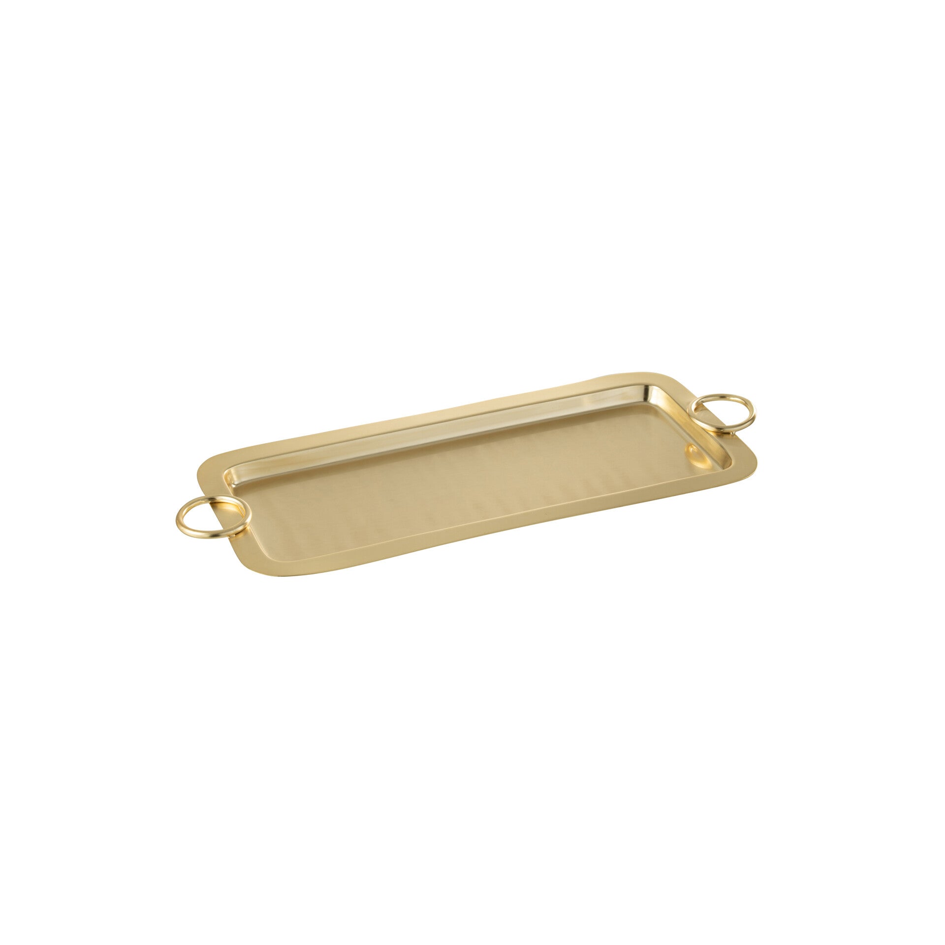 Tabuleiro Retangular Dourado, com pegas nas laterais.