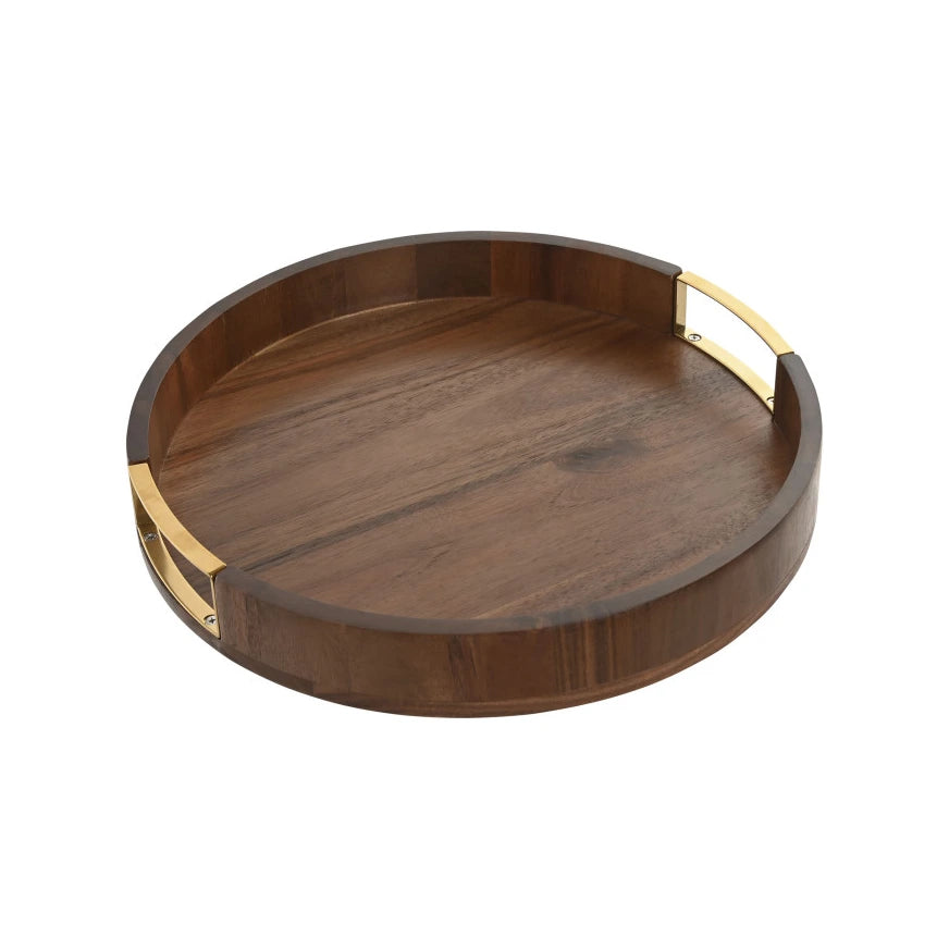 O tabuleiro redondo em madeira natural de acácia com pegas em metal dourado é a combinação perfeita entre funcionalidade e elegância. Com um design intemporal e materiais de alta qualidade, este tabuleiro é ideal para servir com estilo em qualquer ocasião, desde um jantar especial até um simples lanche em família.