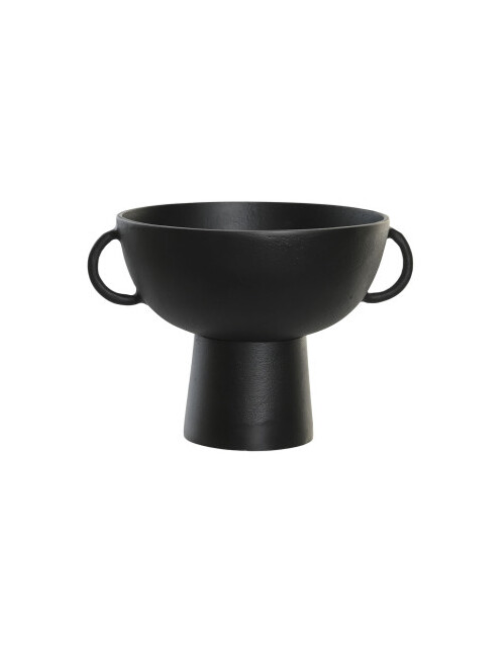 Feita em alumínio de alta qualidade, a taça apresenta um acabamento tosco, transmitindo um ar de feito à mão. Um design encantador é adornado com duas pegas, que conferem um toque de textura e dimensão à peça.