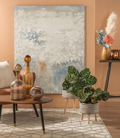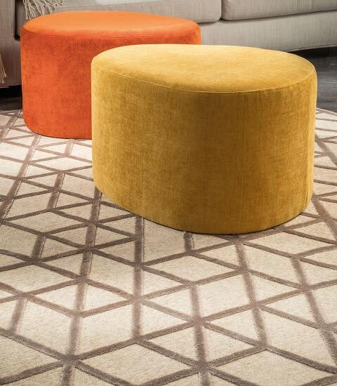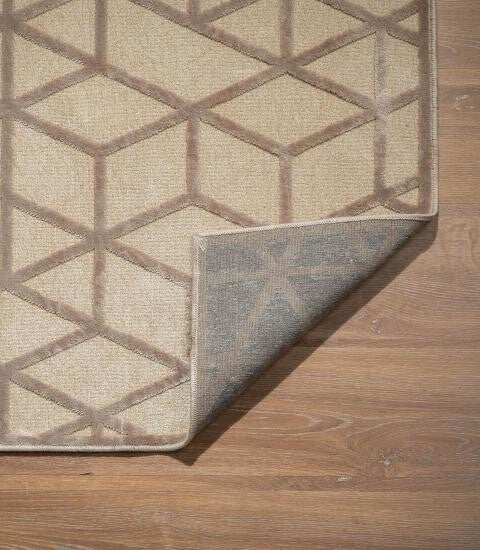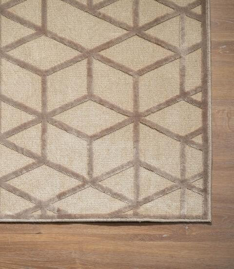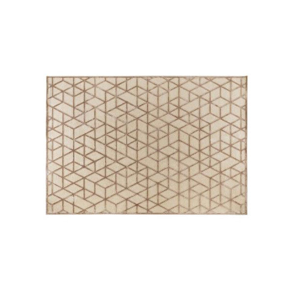 Tapete de tecido macio médio, 160x230 cm, com decorações em relevo de viscose. Tons neutros de bege e padrões geométricos em perfeito estilo contemporâneo.