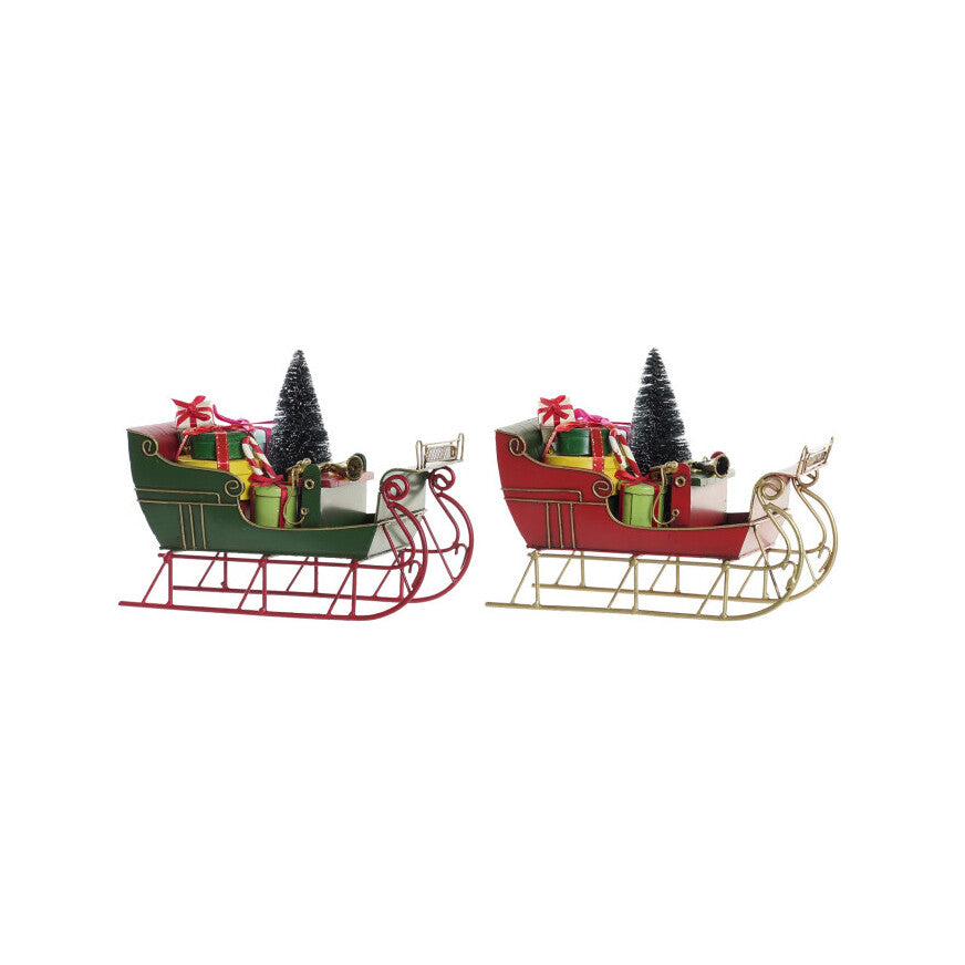 Traga a magia do Natal para sua decoração com o Trenó de Natal, cheio de presentes! Estes encantadores trenós de Natal metal vintage de 18cm de comprimento são uma adição perfeita para criar um ambiente festivo na sua casa. Disponíveis nas cores verde e vermelho, eles transmitem o espírito tradicional e acolhedor das festas de Natal.