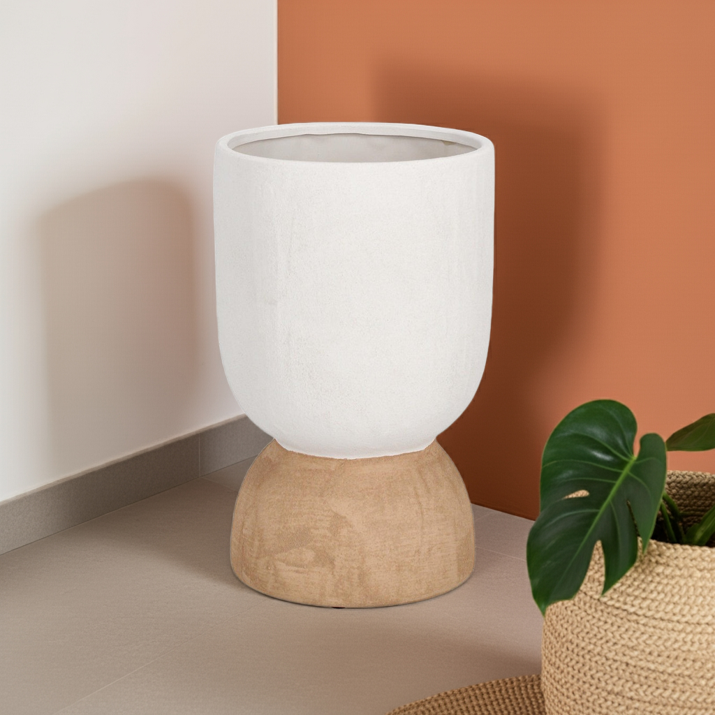 Vaso com uma base em terracota natural e topo branco suave, o Vaso Hector traz textura, contraste e um charme rústico sofisticado. A sua presença discreta mas marcante cria aquele ponto de interesse na sala, na entrada ou no quarto, elevando qualquer composição decorativa sem esforço.